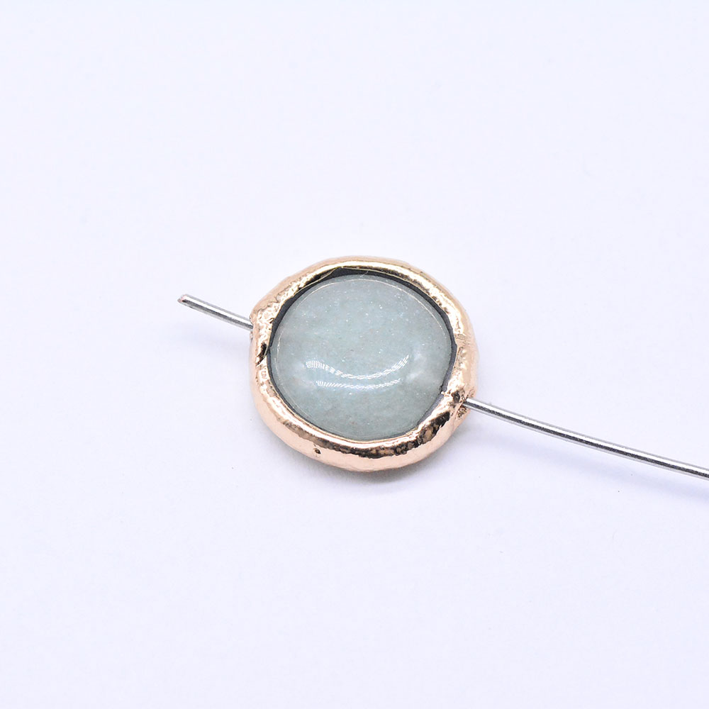 天然石ビーズ メノウ 枠付き ラウンド 17m ゴールド (1ヶ)