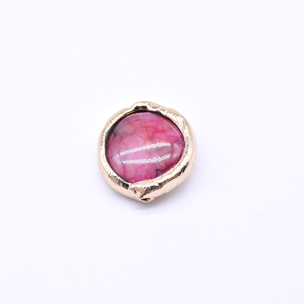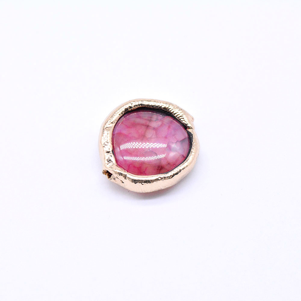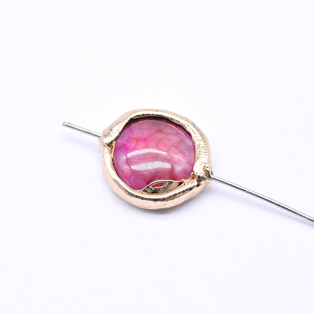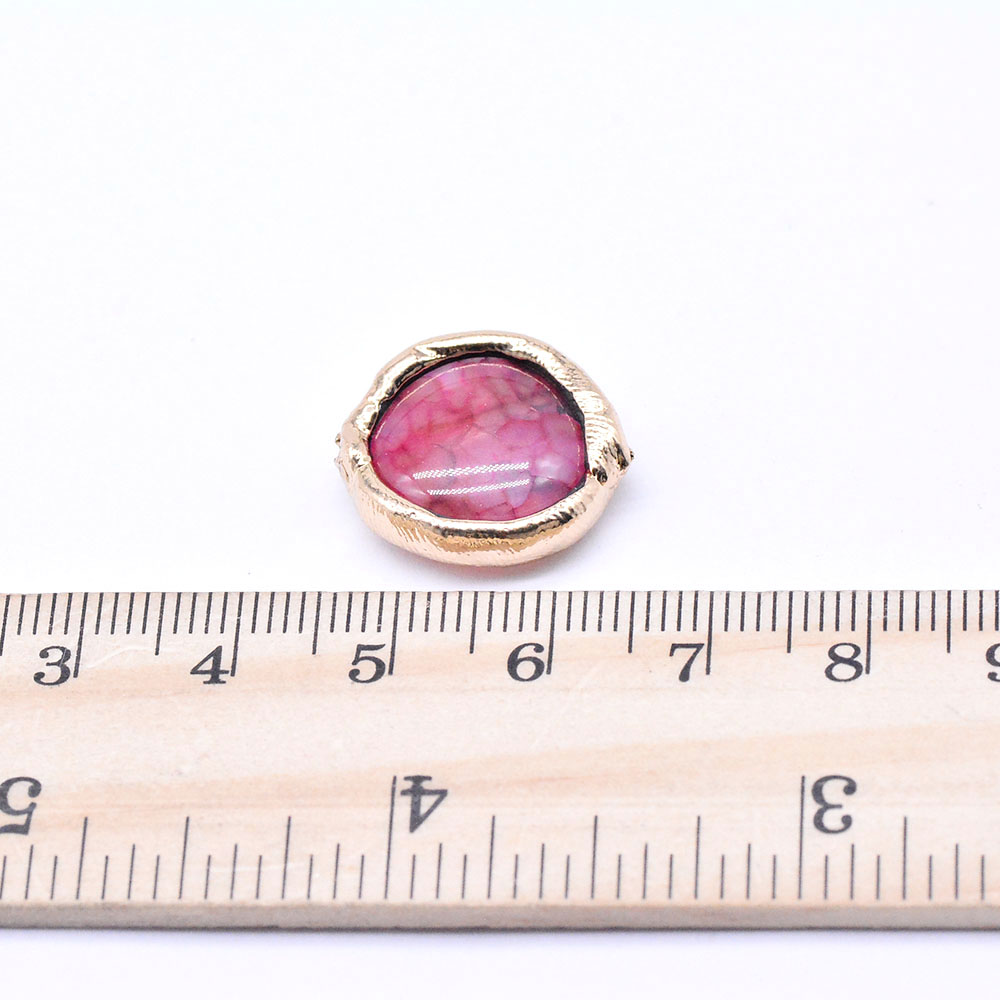 天然石ビーズ メノウ 枠付き ラウンド 17×19mm ゴールド (1ヶ)
