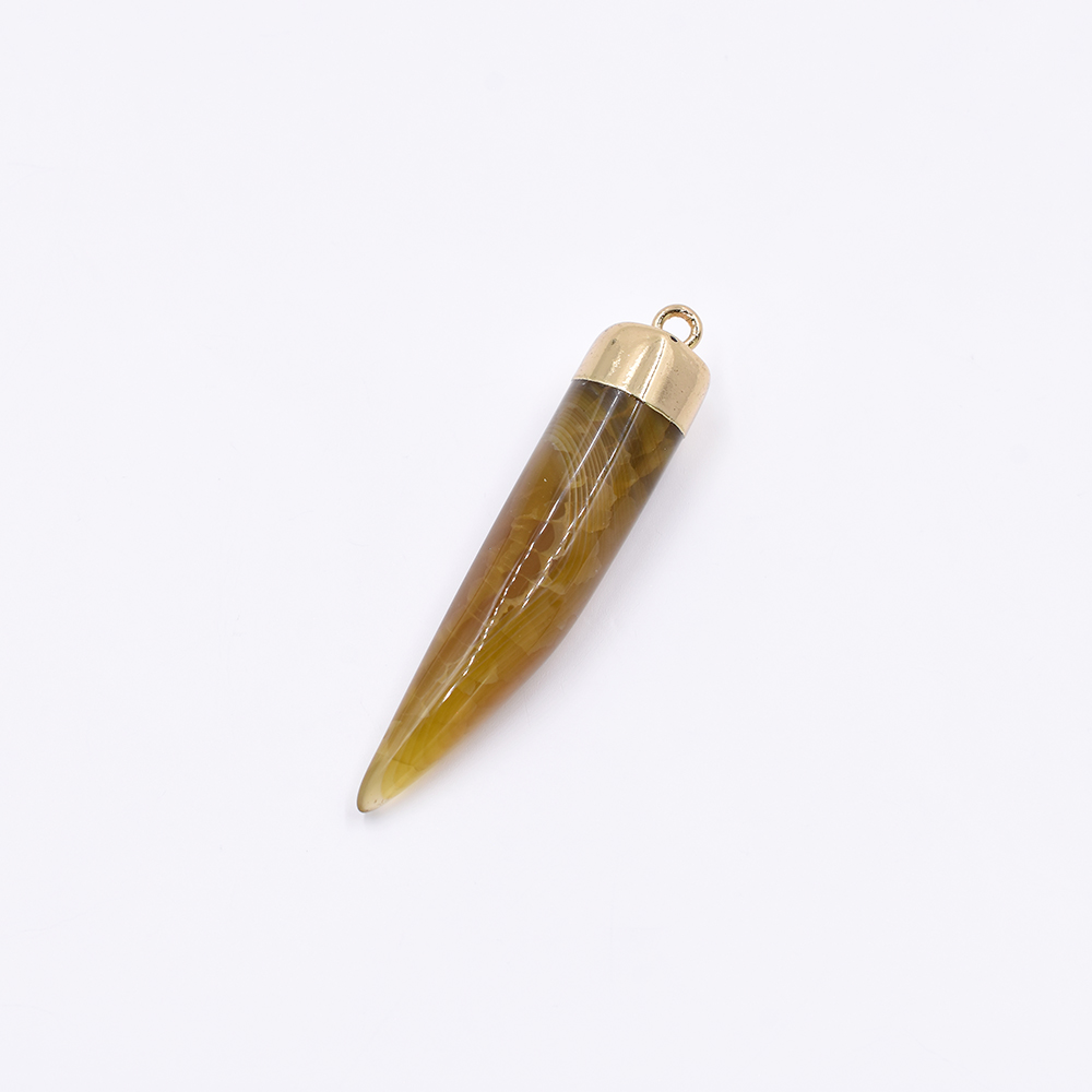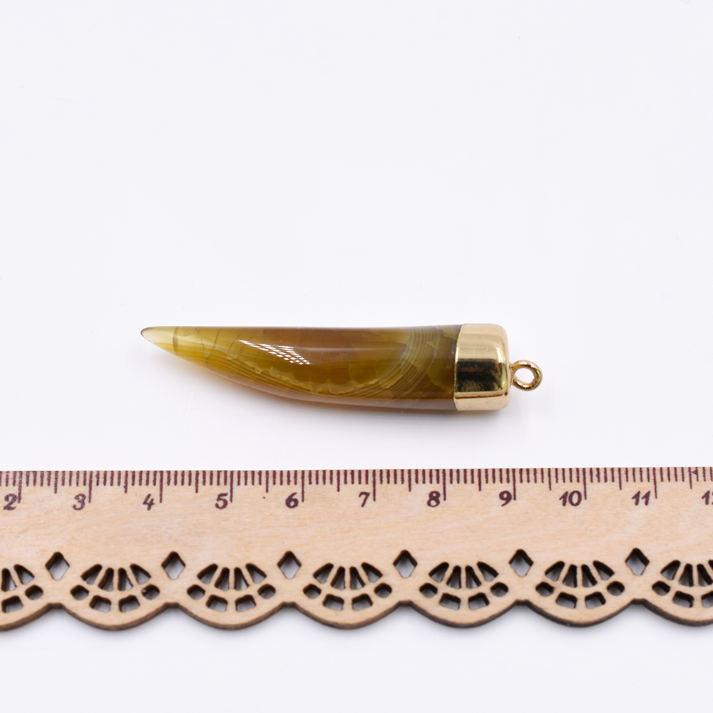天然石チャーム アイボリー型 1カン オーカー 58x12mm ゴールド (1ヶ)