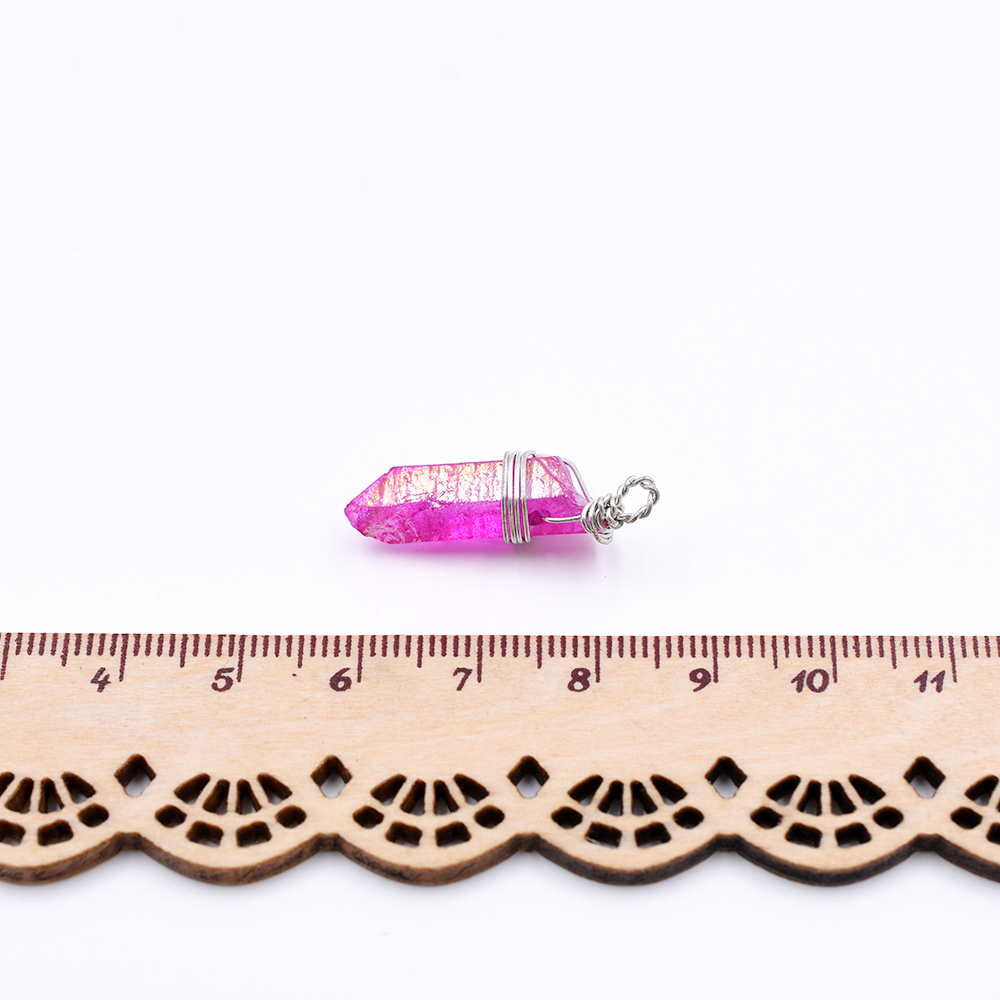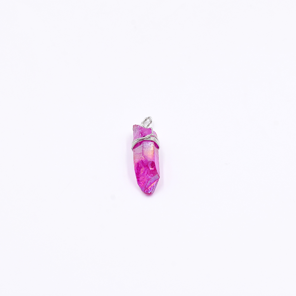 天然石チャーム 不規則カット 1カン ピンククリスタル 27x9mm ロジウム (1ヶ)