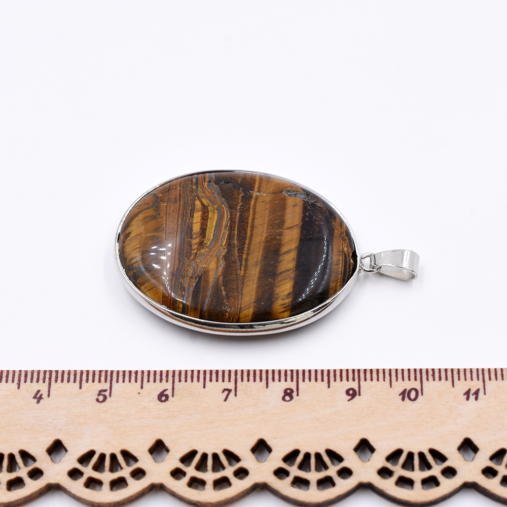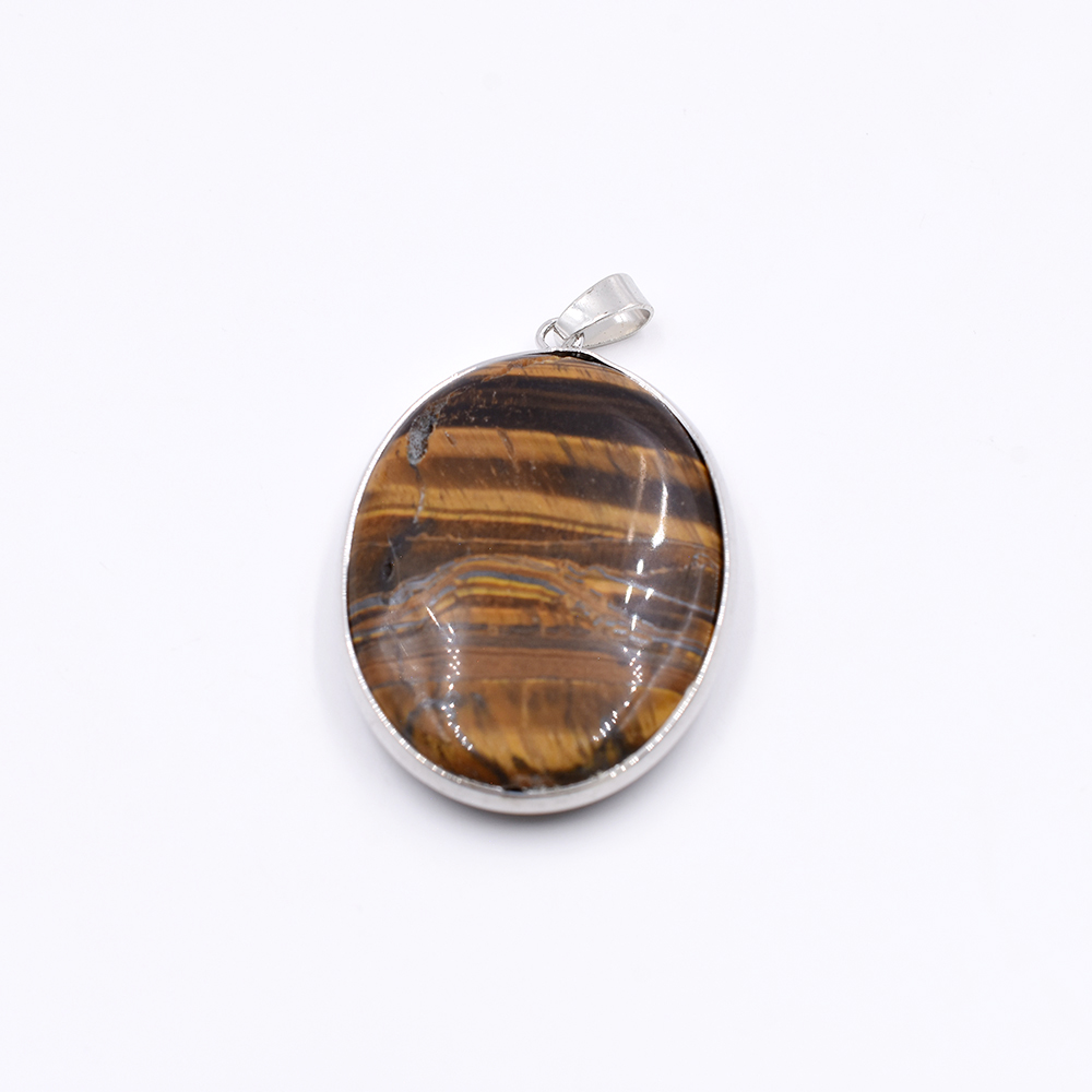 天然石ペンダントトップ オーバル 1カン タイガアイ 45x32mm ロジウム (1ヶ)