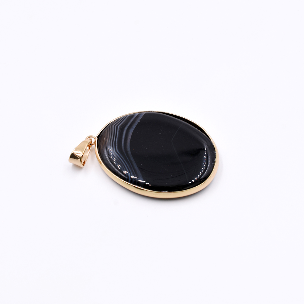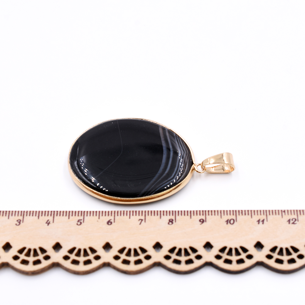 天然石ペンダントトップ オーバル 1カン ブラックアゲート 47x34mm ゴールド (1ヶ)