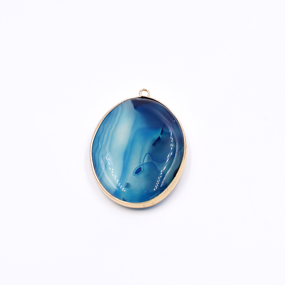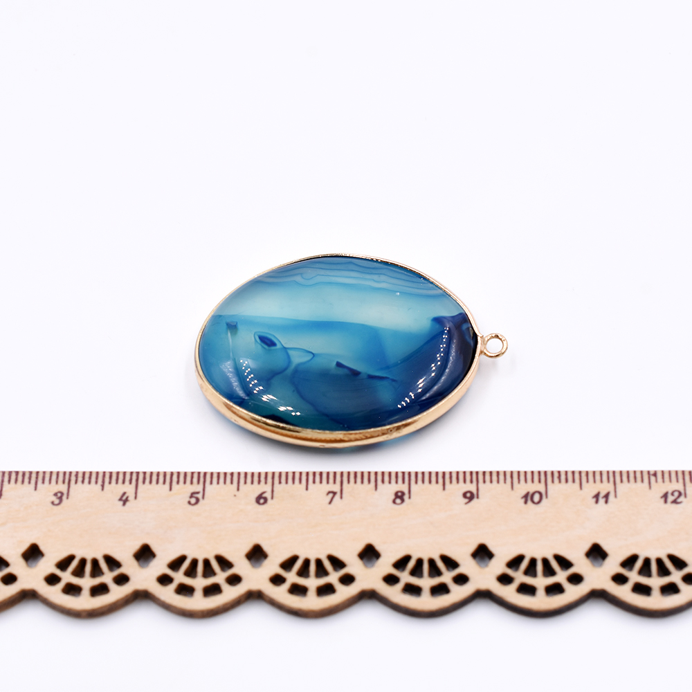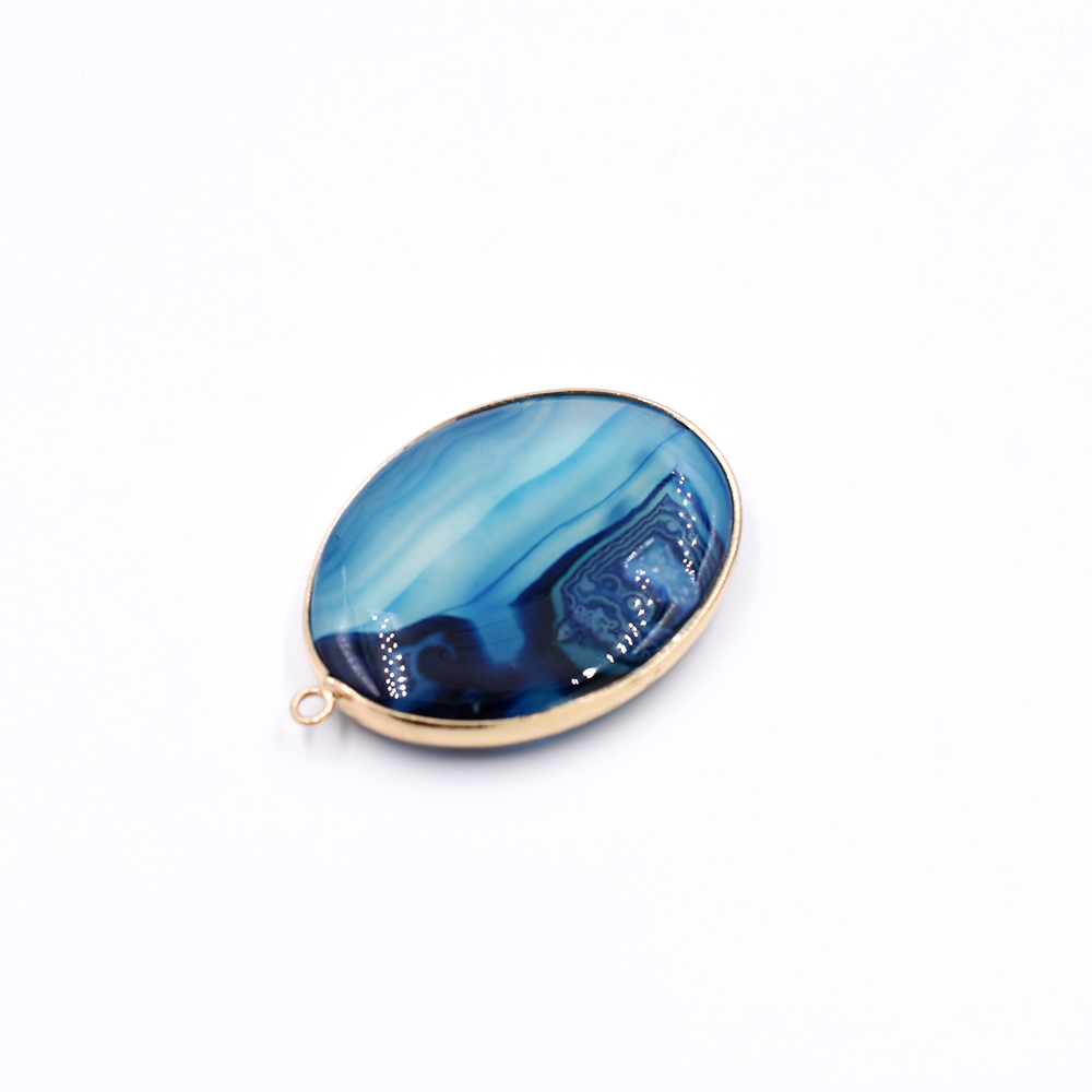 天然石フレームチャーム オーバル 1カン ブルーアゲート 48x34mm ゴールド (1ヶ)