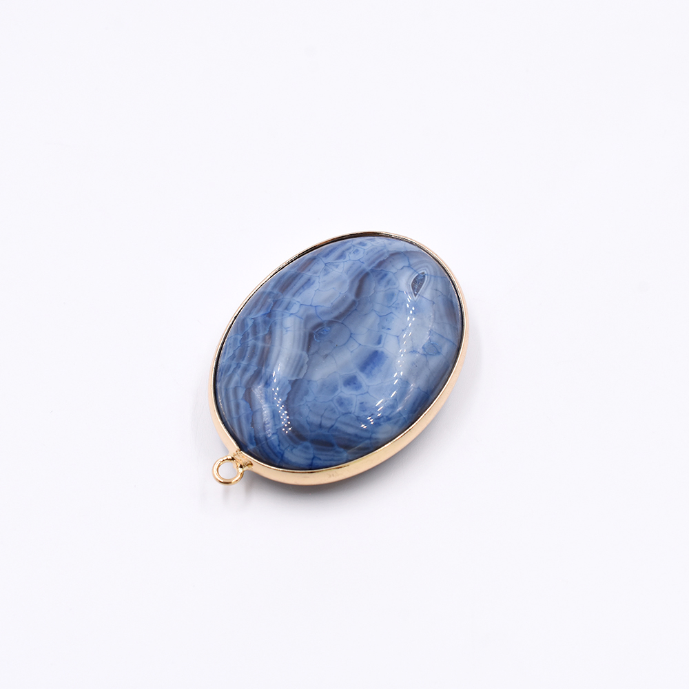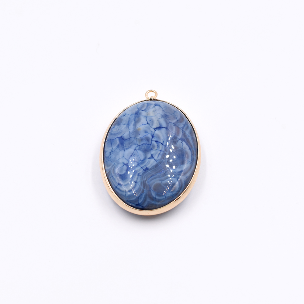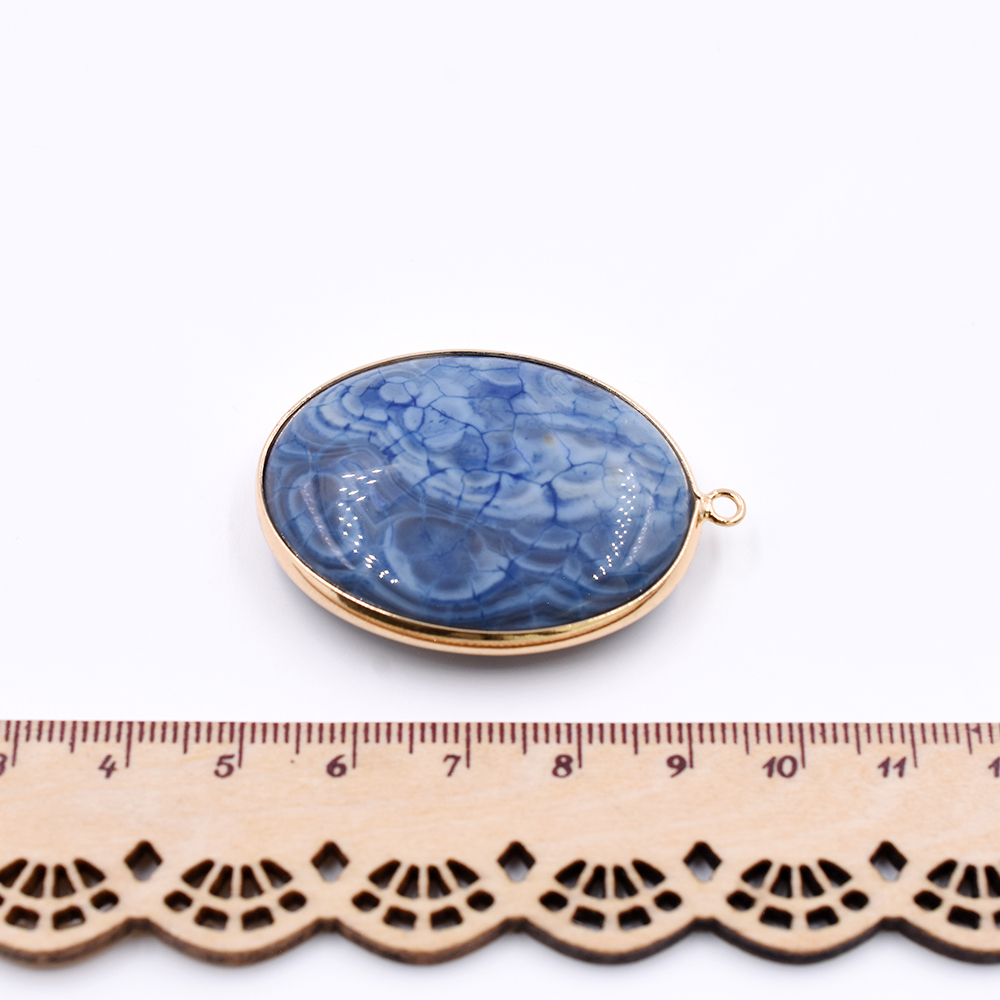 天然石フレームチャーム オーバル 1カン ブルーアゲート 46x32mm ゴールド (1ヶ)