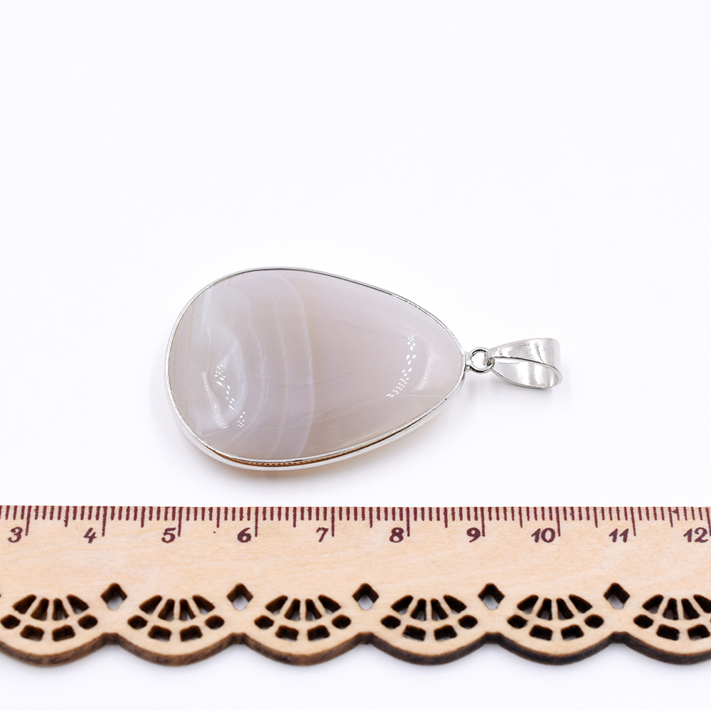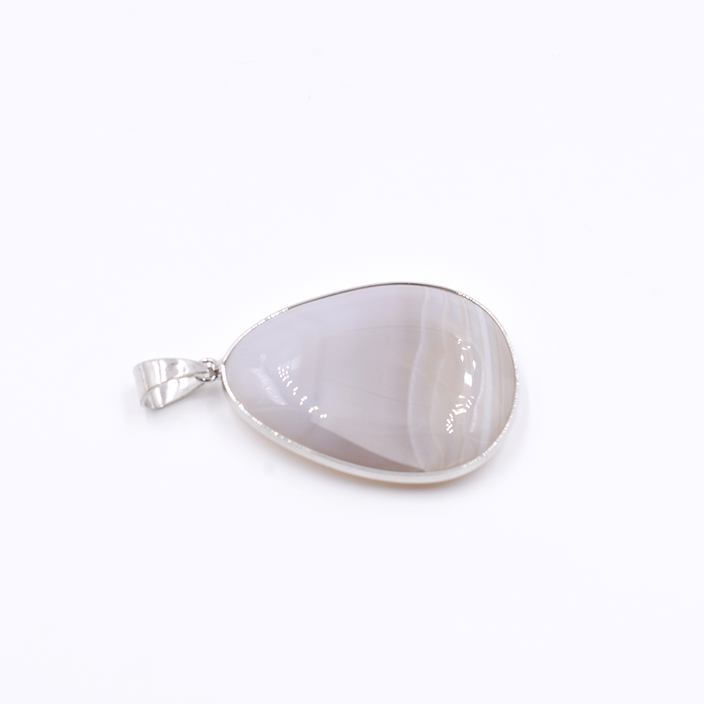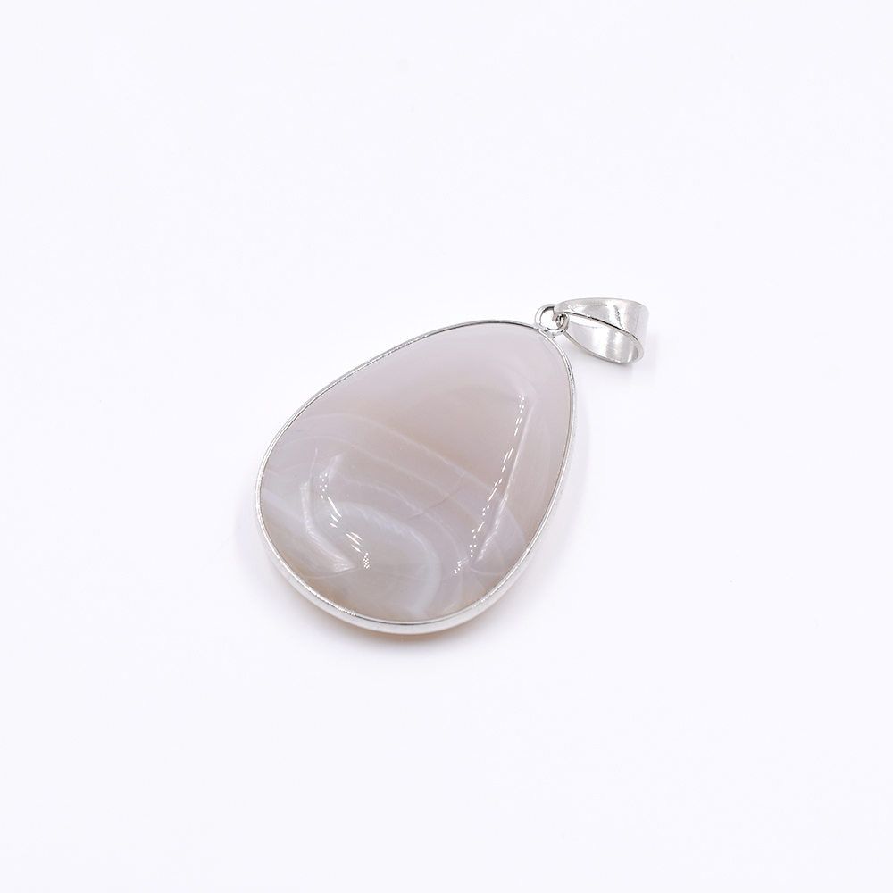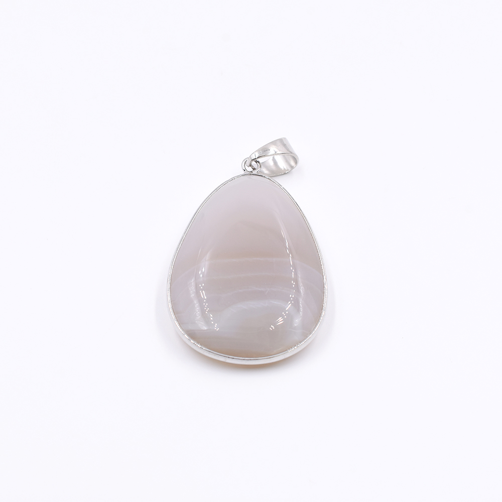 天然石ペンダントトップ しずく型 1カン グレーアゲート 45x31mm ロジウム (1ヶ)