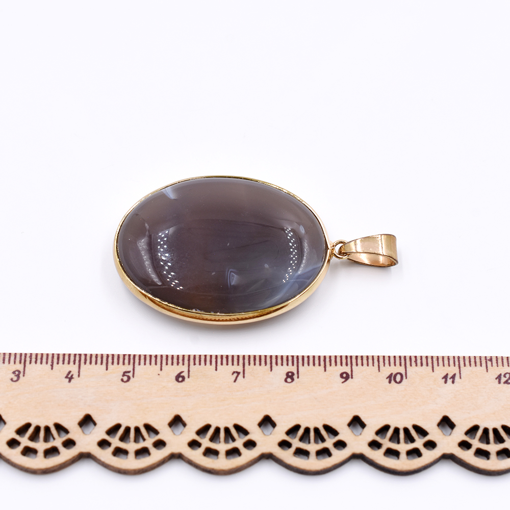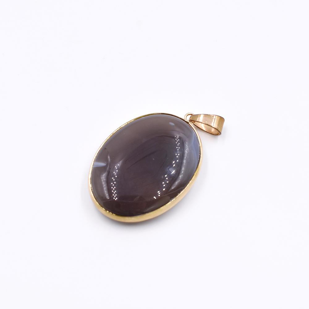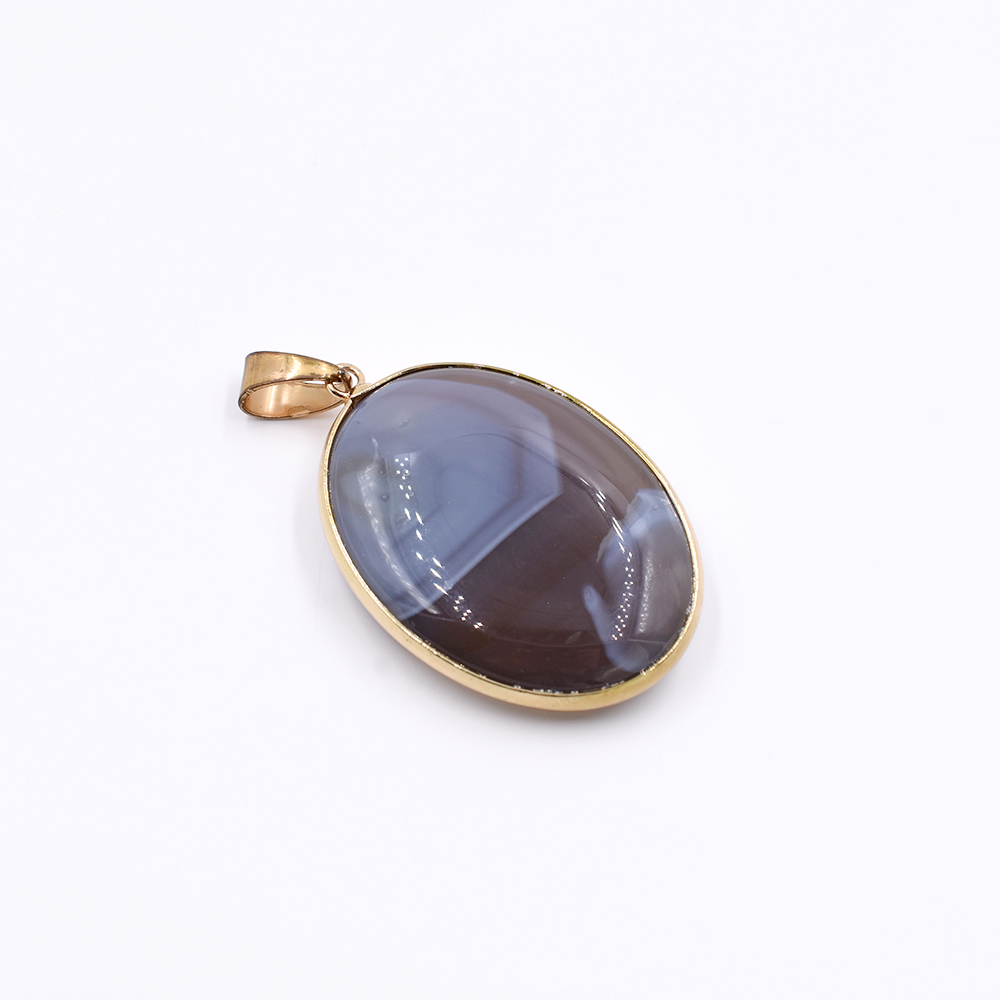 天然石ペンダントトップ オーバル 1カン ブラウンアゲート 45x31mm ゴールド (1ヶ)