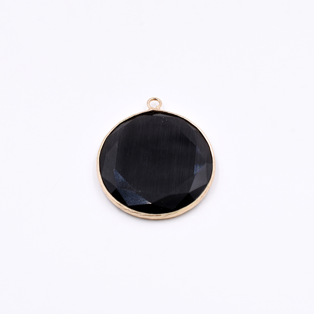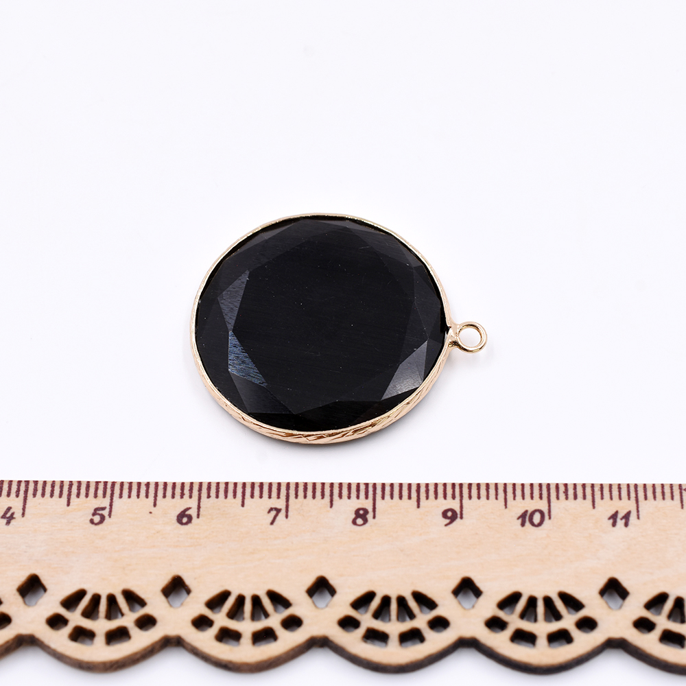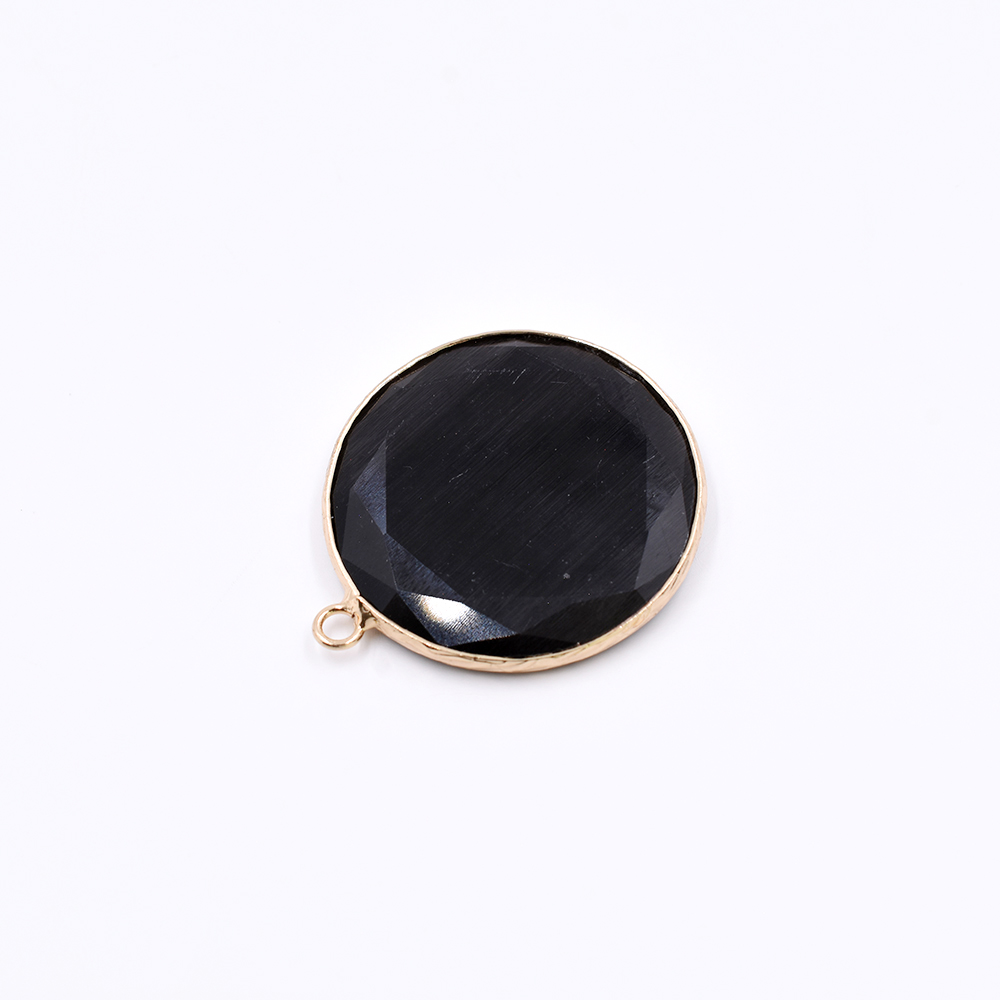 天然石フレームチャーム ラウンドカット 1カン ブラックオパール 36x31mm ゴールド (1ヶ)