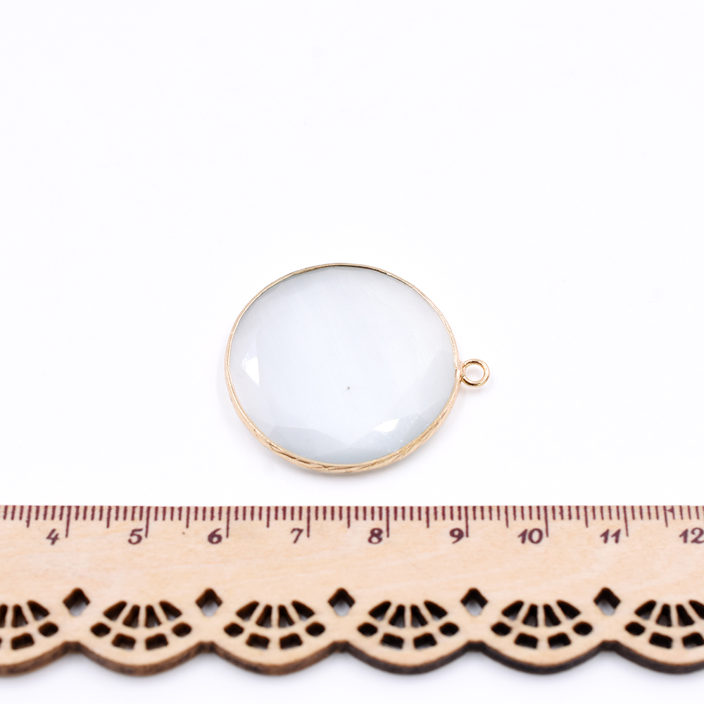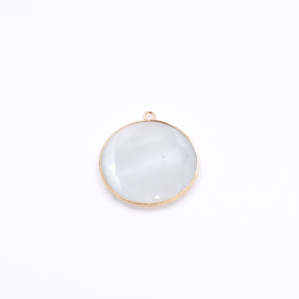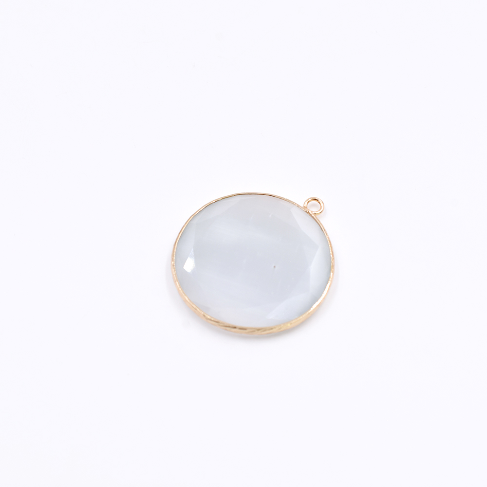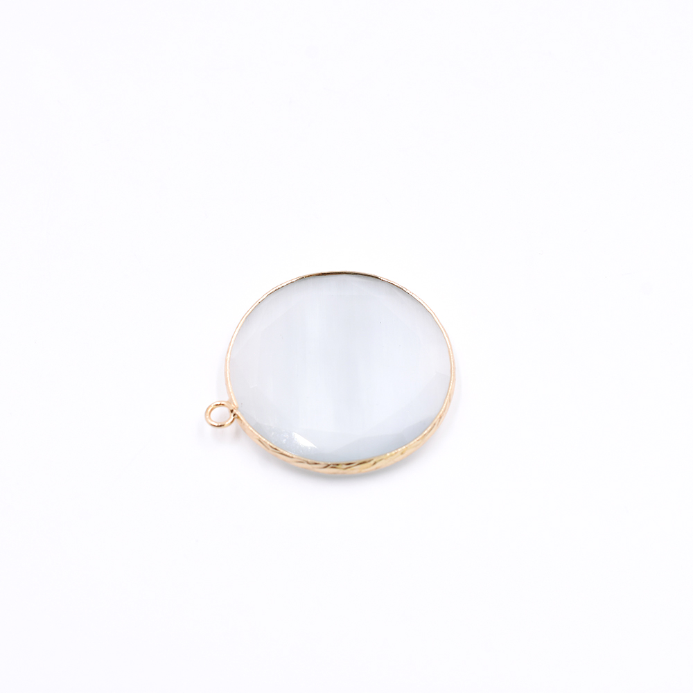 天然石フレームチャーム ラウンドカット 1カン オパール 35x31mm ゴールド (1ヶ)