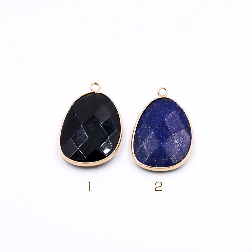 天然石フレームチャーム 不規則カット 1カン 35x22mm 全2色 ゴールド (1ヶ)