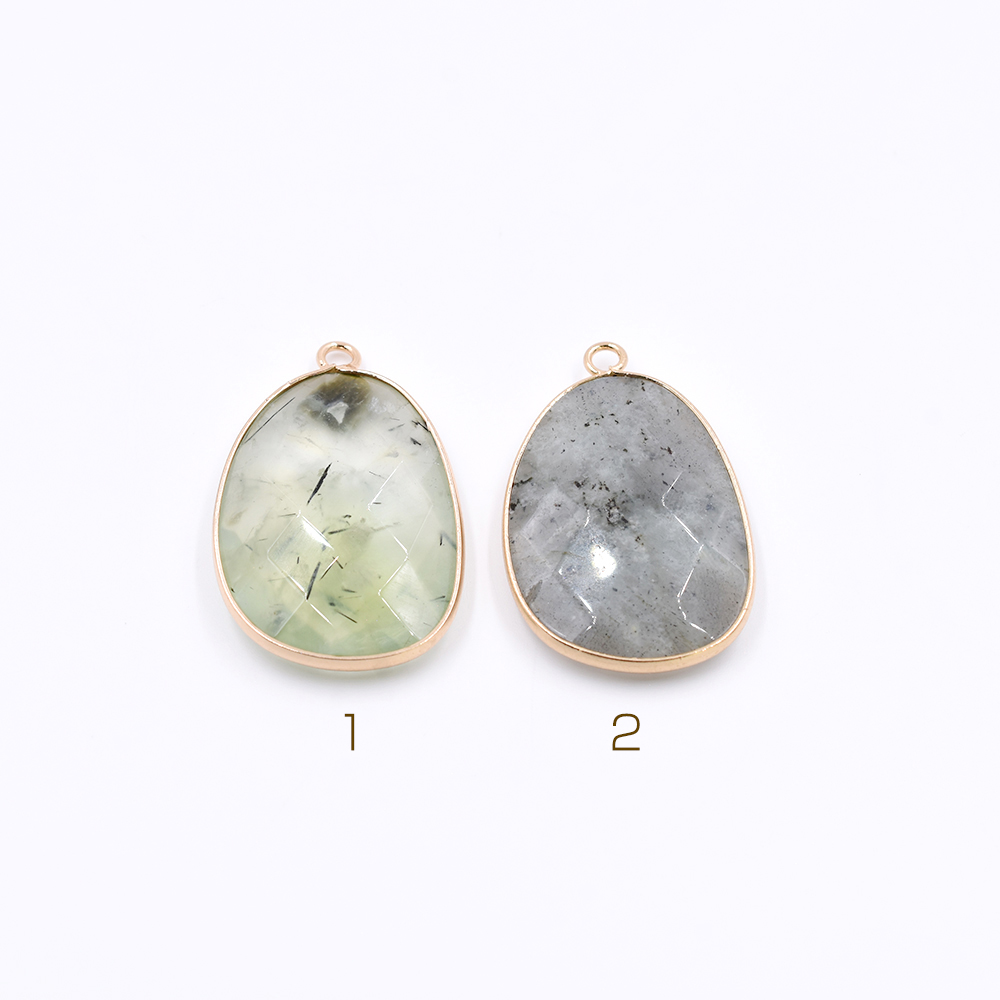 天然石フレームチャーム 不規則カット 1カン 35x22mm 全2色 ゴールド (1ヶ)