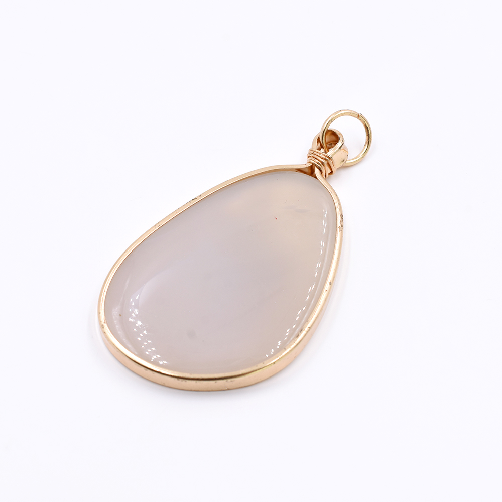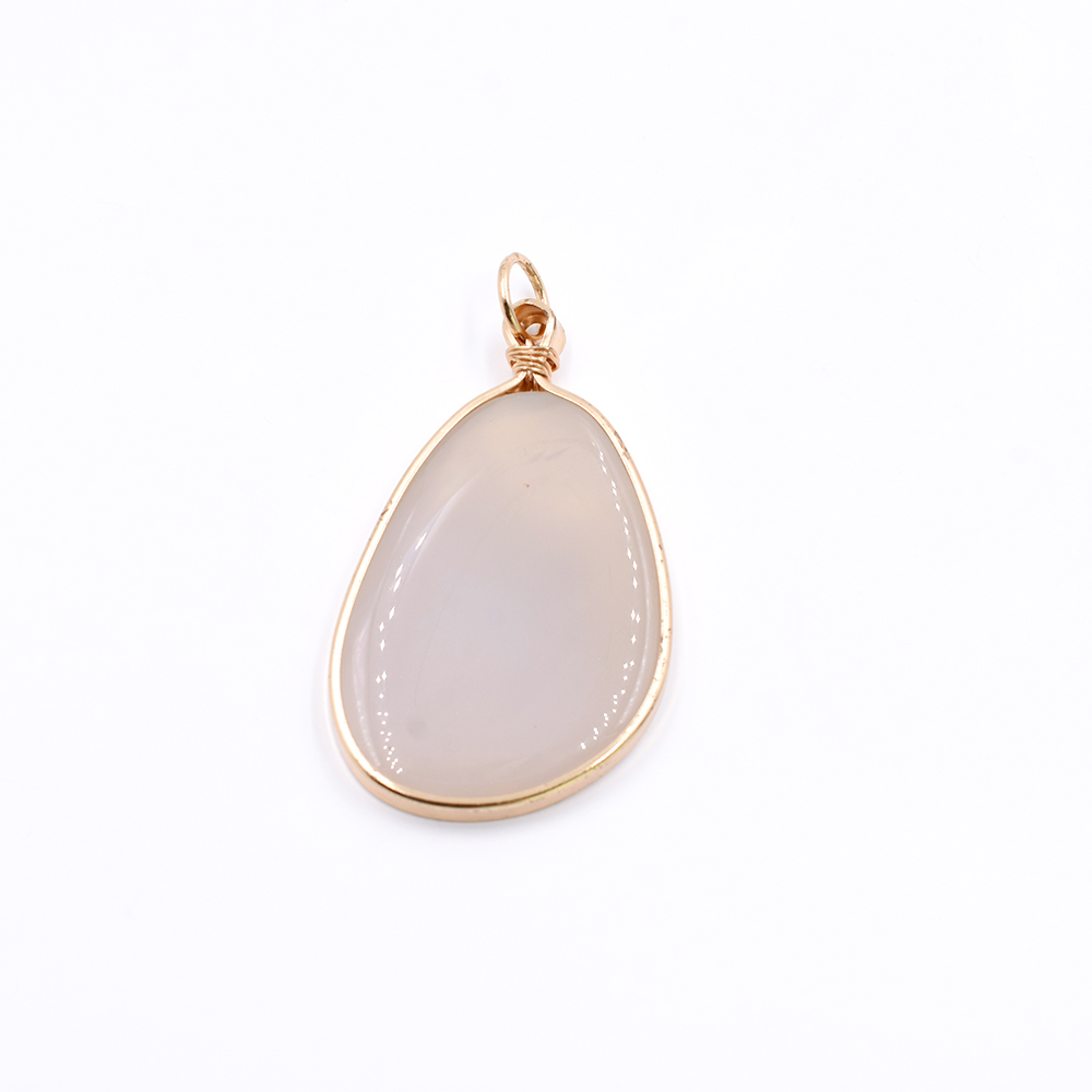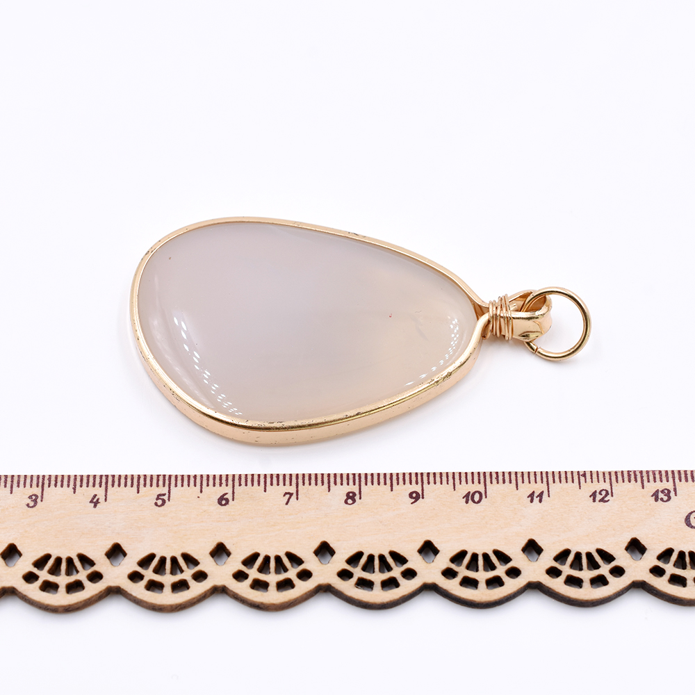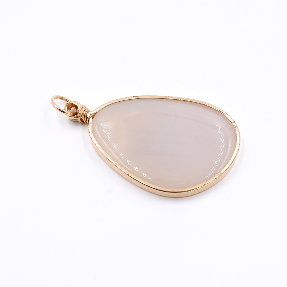 天然石フレームチャーム 不規則型 1カン アイボリーアゲート 70x41mm ゴールド (1ヶ)