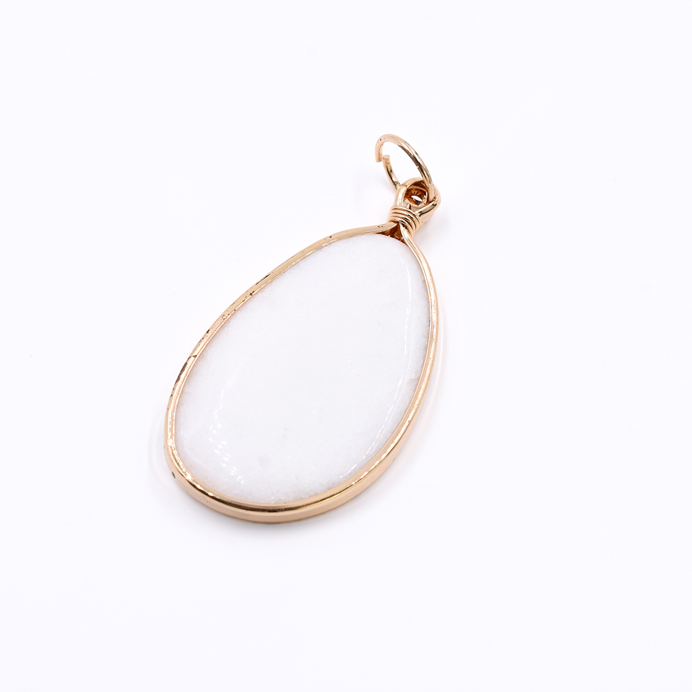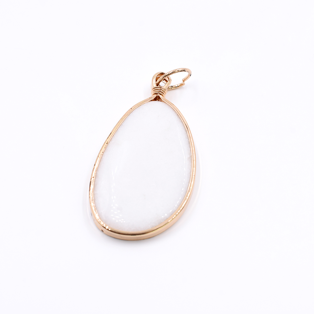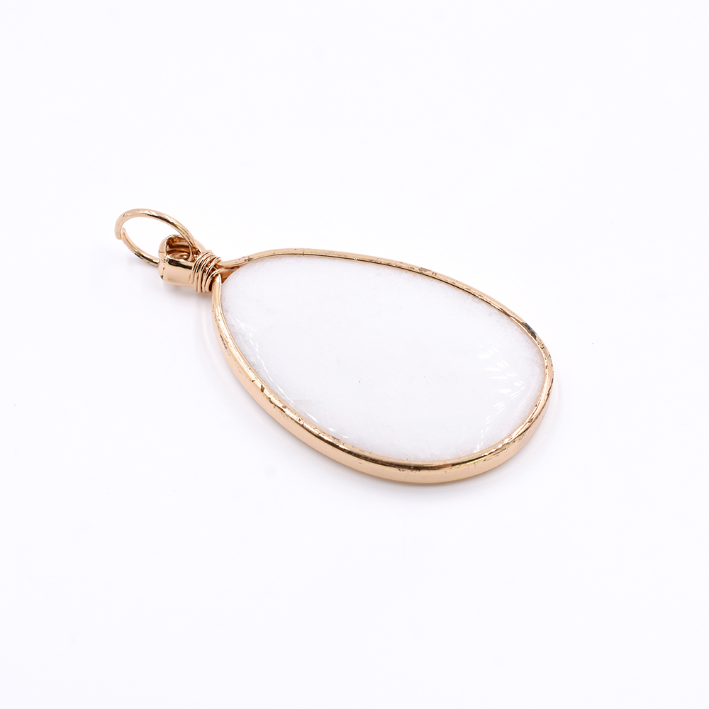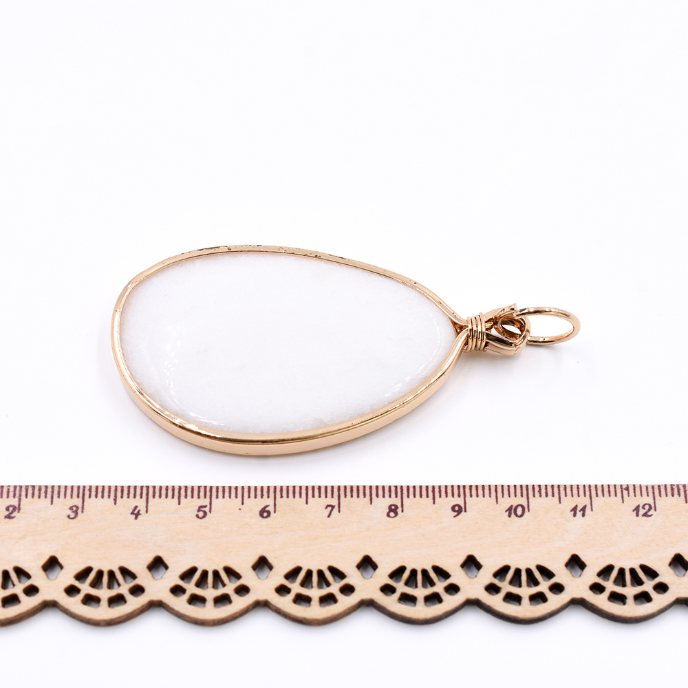 天然石フレームチャーム 不規則型 1カン ホワイトアゲート 68x37mm ゴールド (1ヶ)