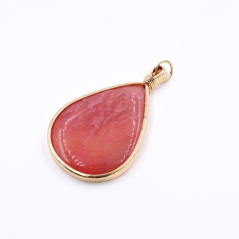 天然石フレームチャーム しずく型 1カン ライトサーモンアゲート 69x42mm ゴールド (1ヶ)