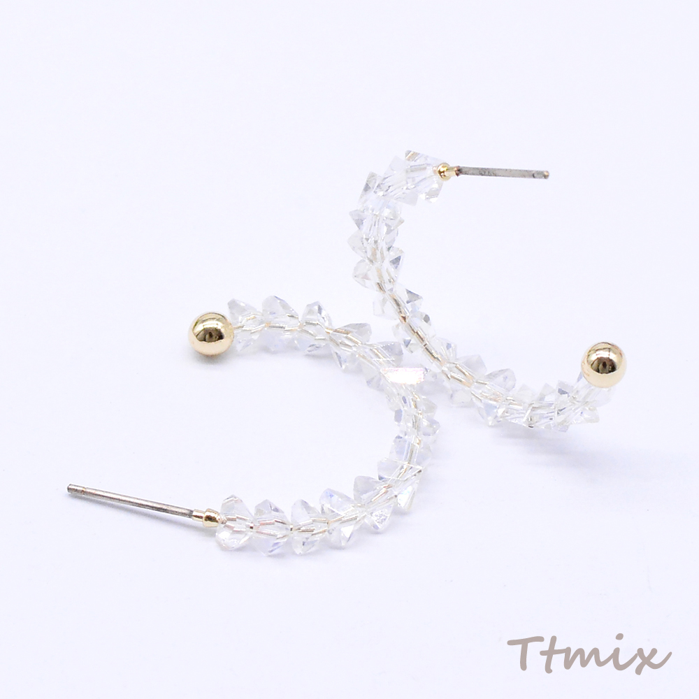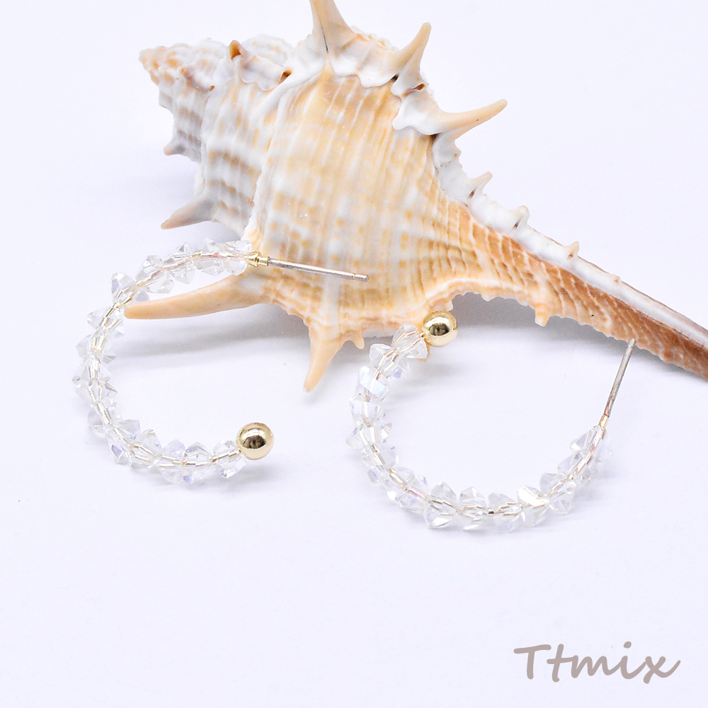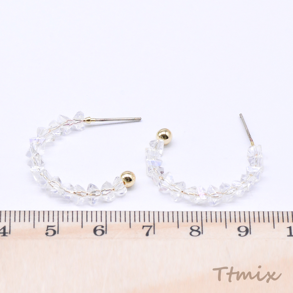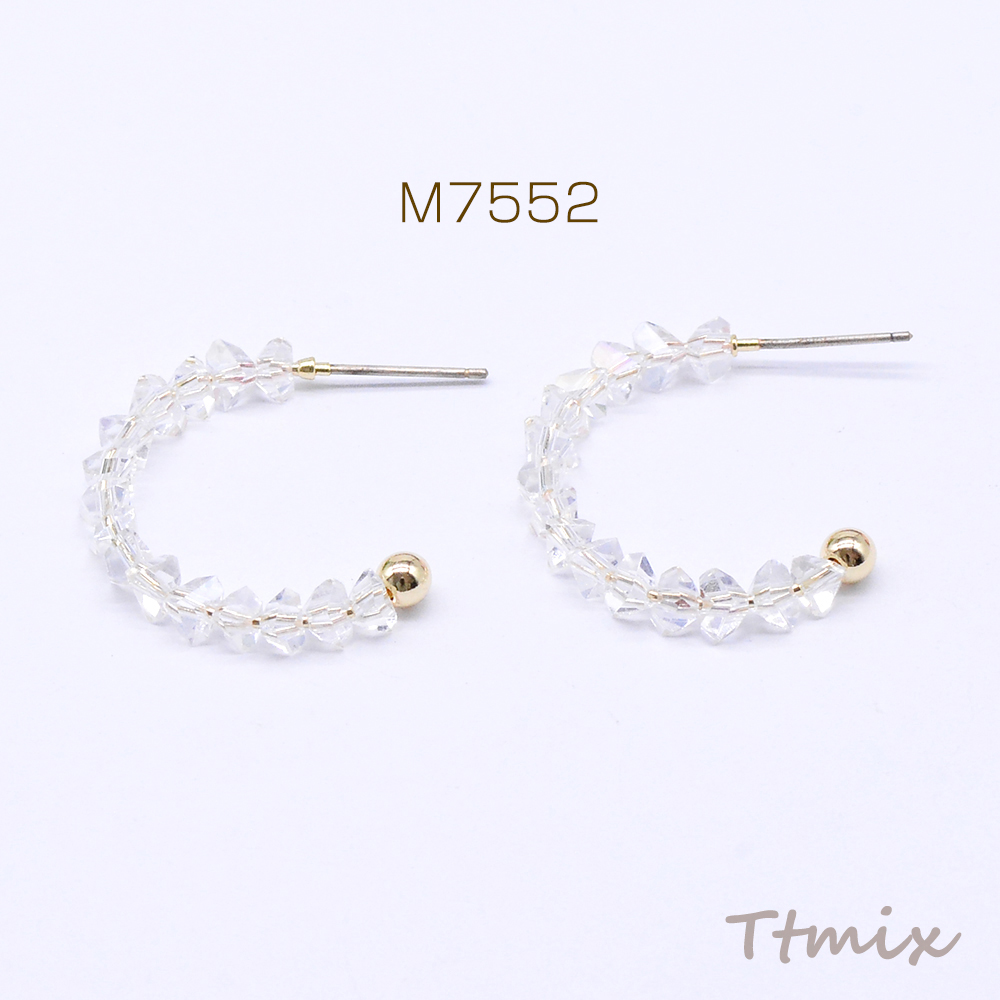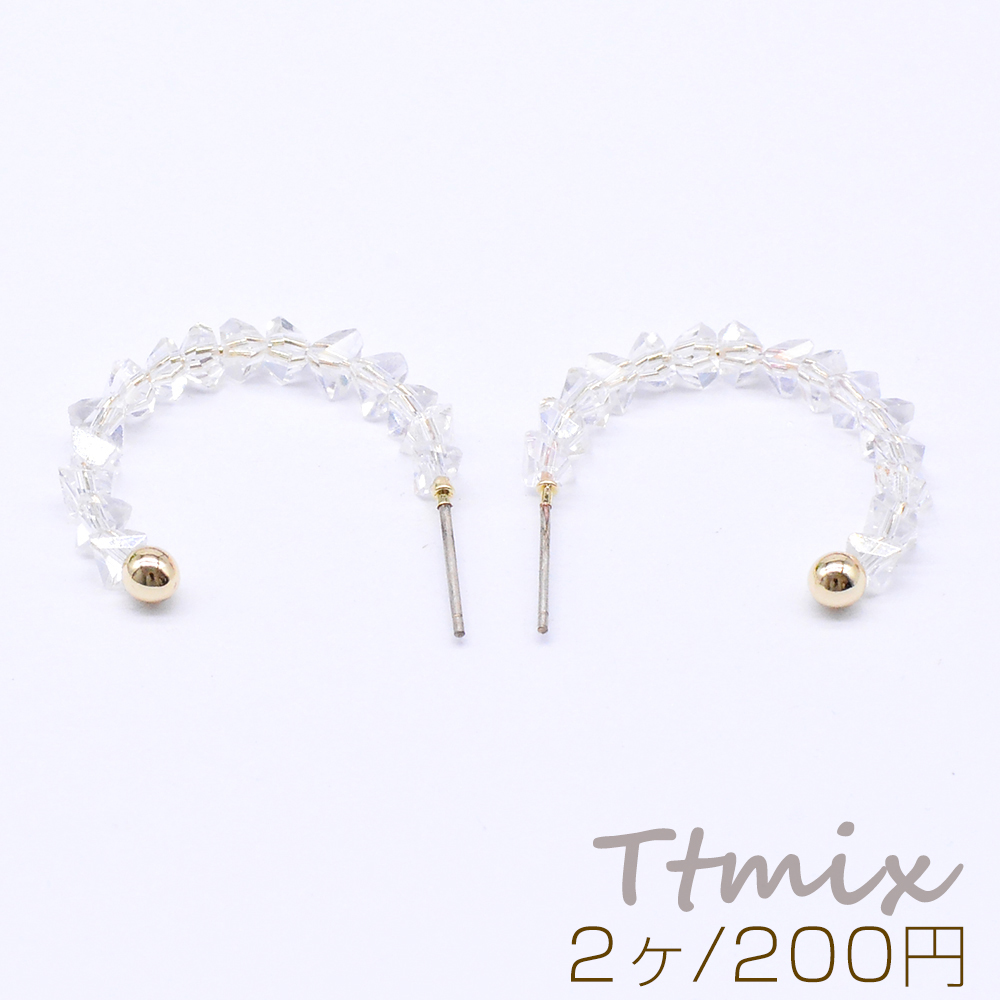 デザインピアス フープ ガラスビース付き 25×28mm ゴールド(2ヶ)