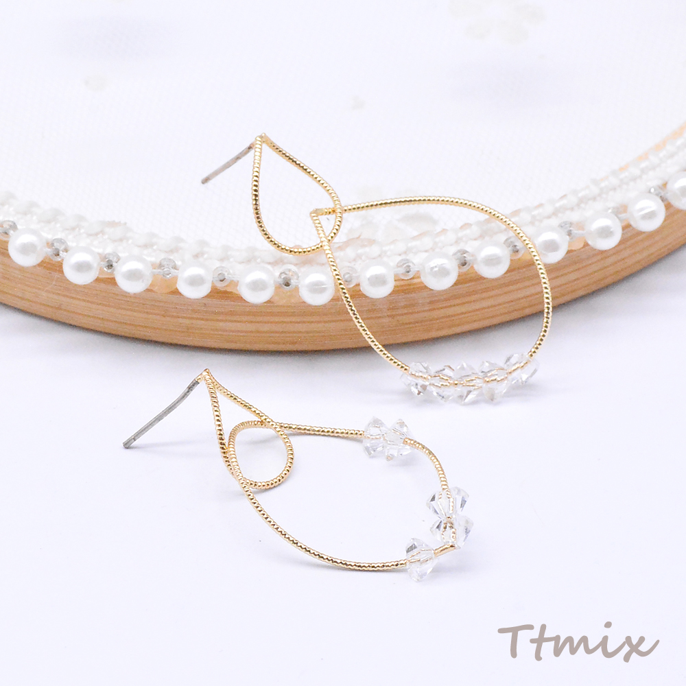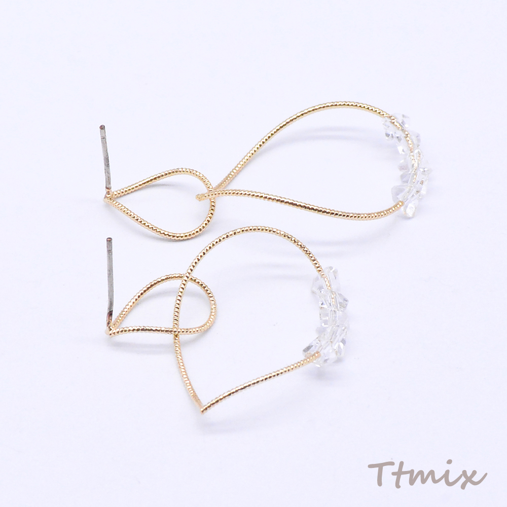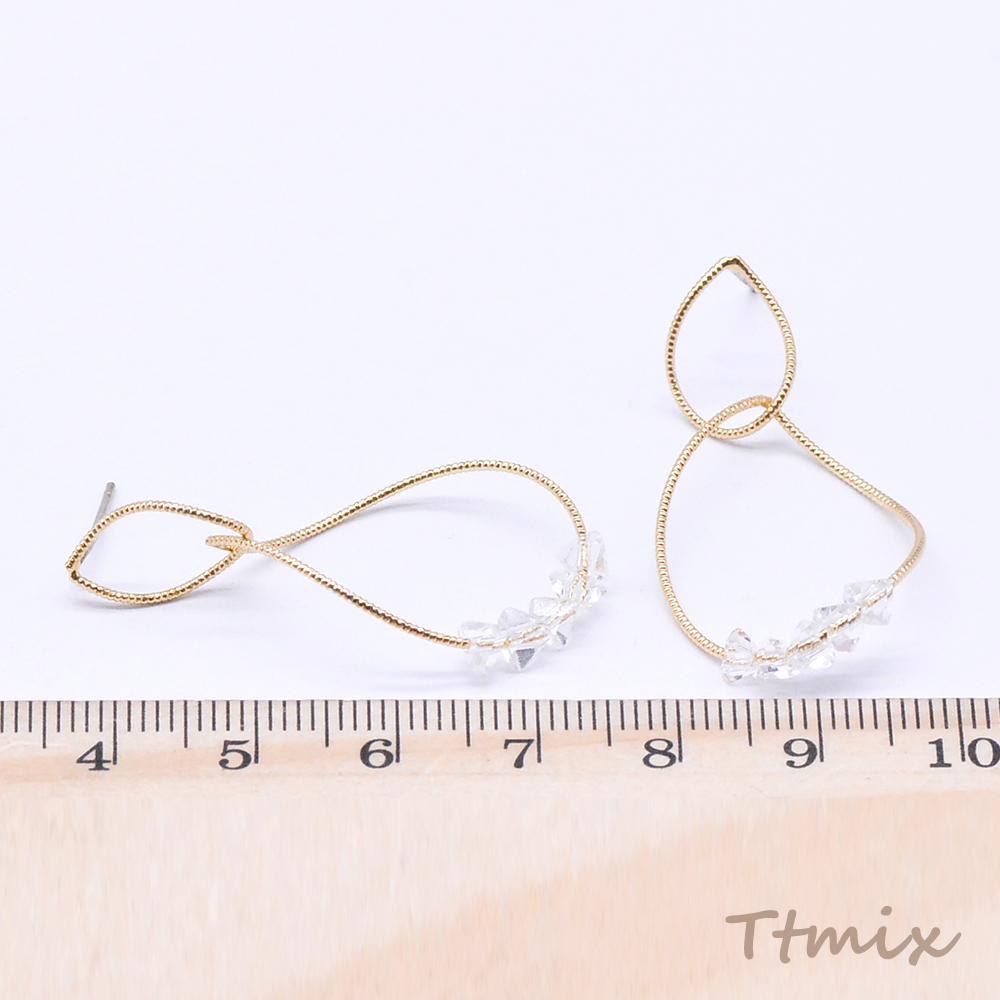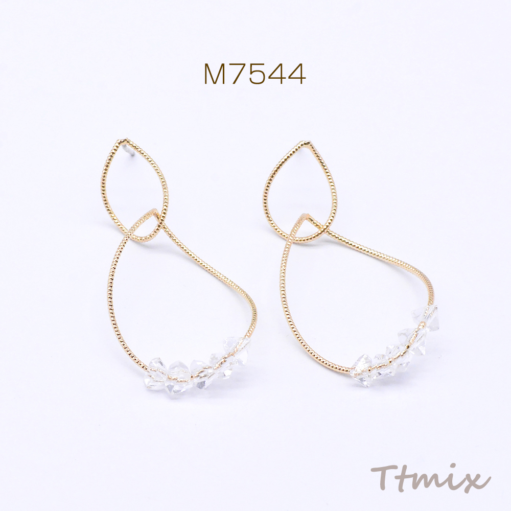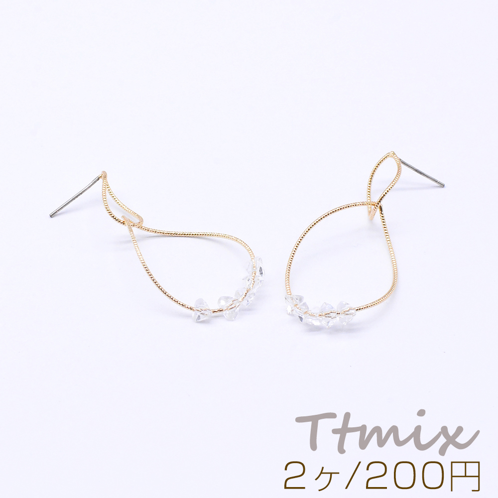 デザインピアス 2連しずく型 ガラスビース付き 19×39mm ゴールド(2ヶ)