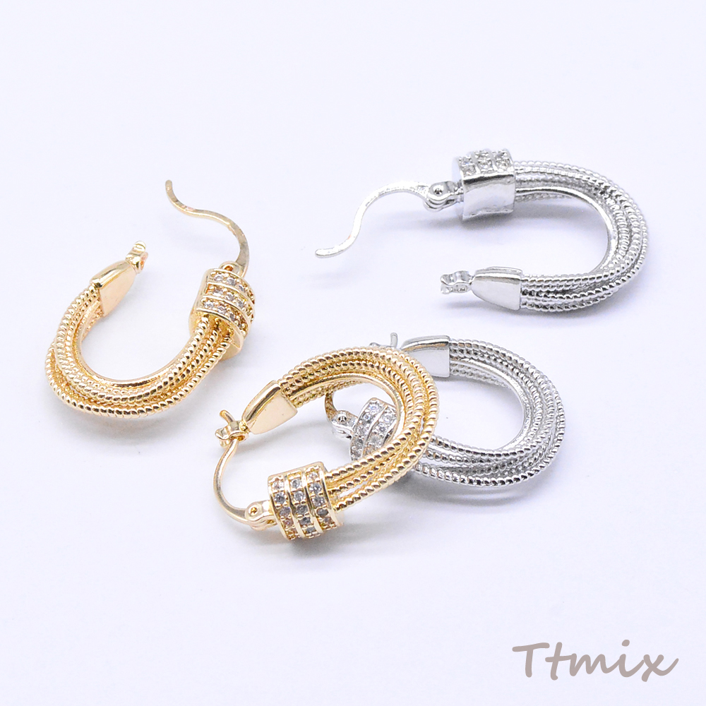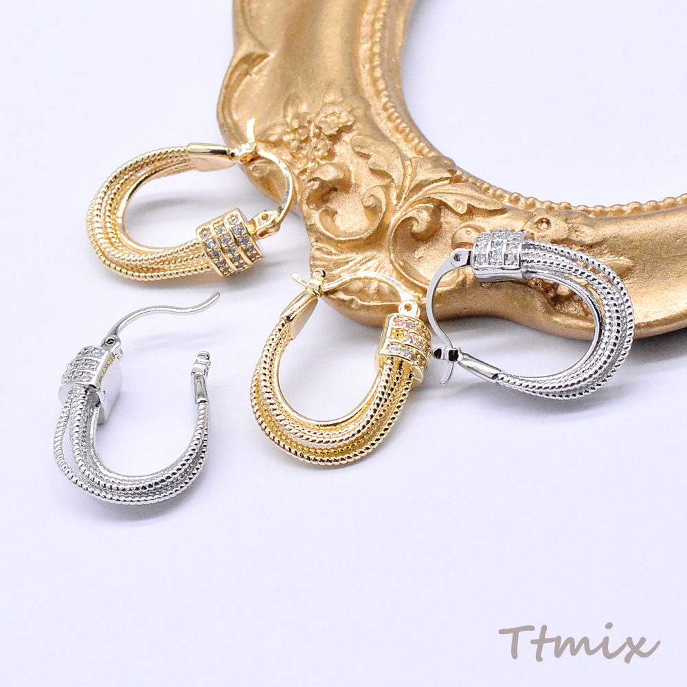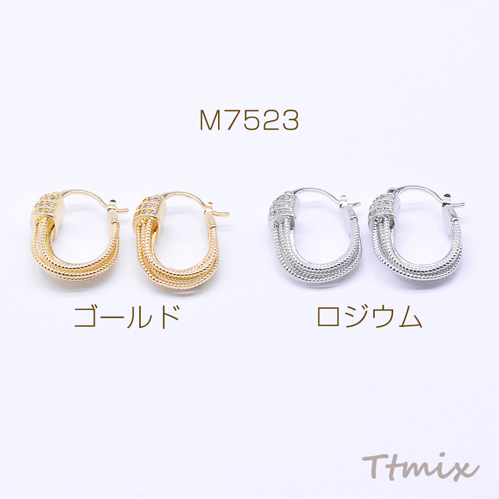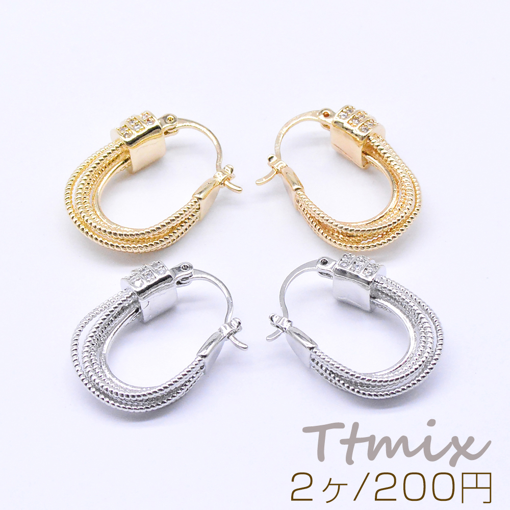デザインフープピアス ジルコニア付き U字型 16×23mm(2ヶ)
