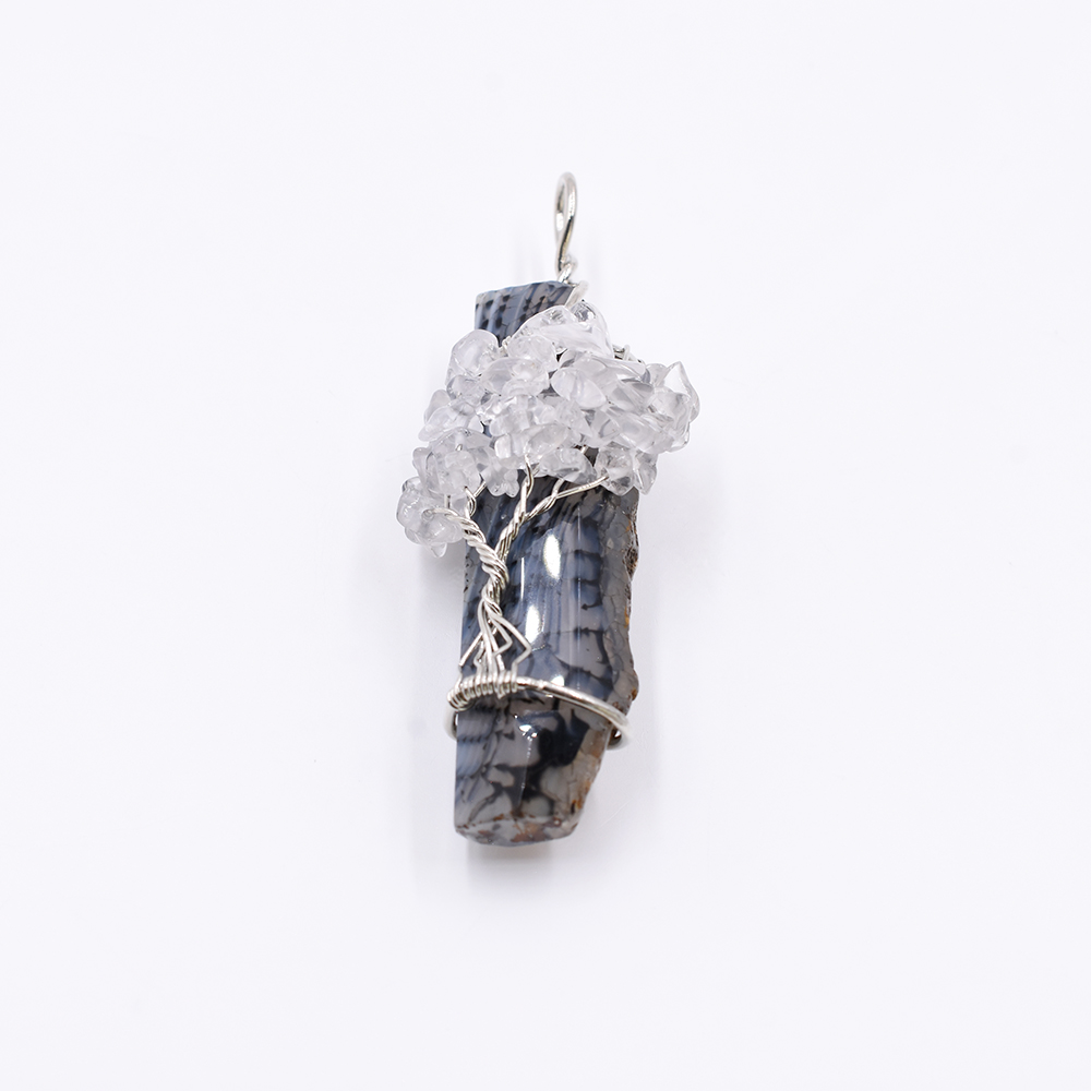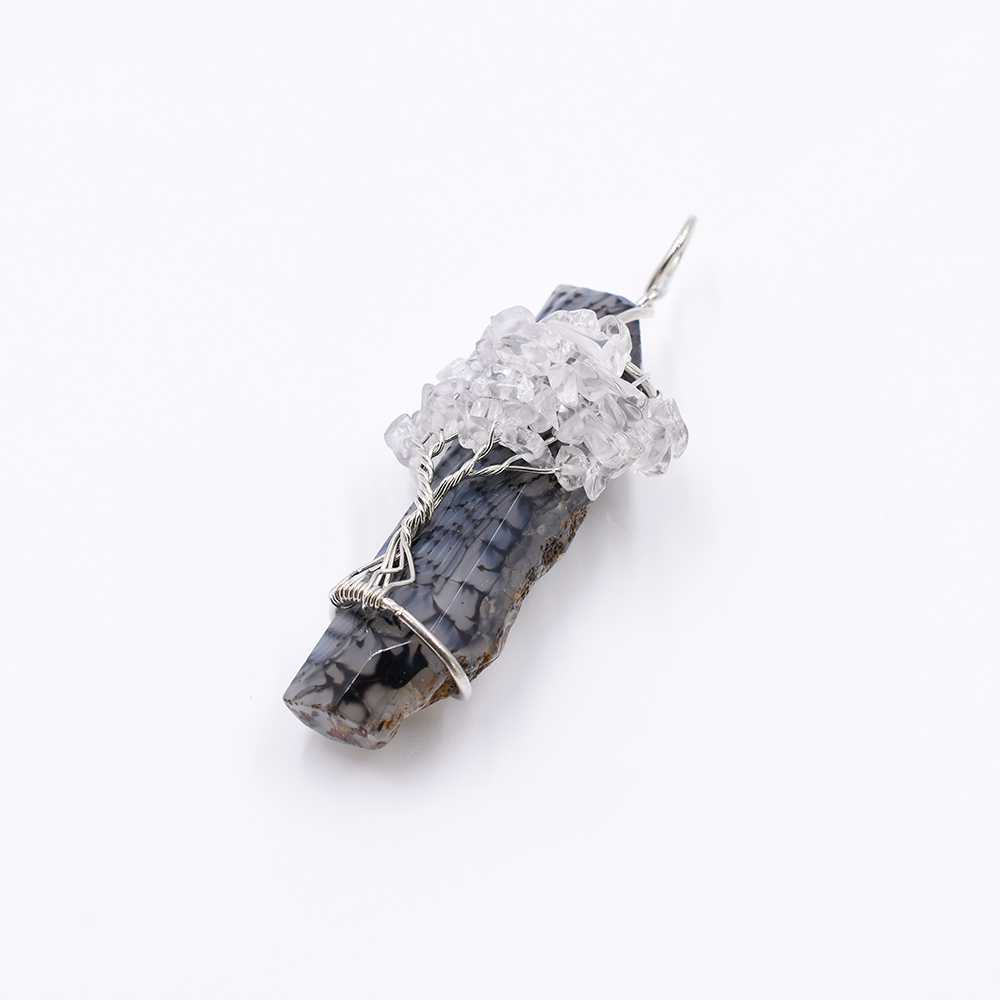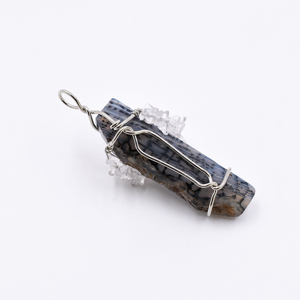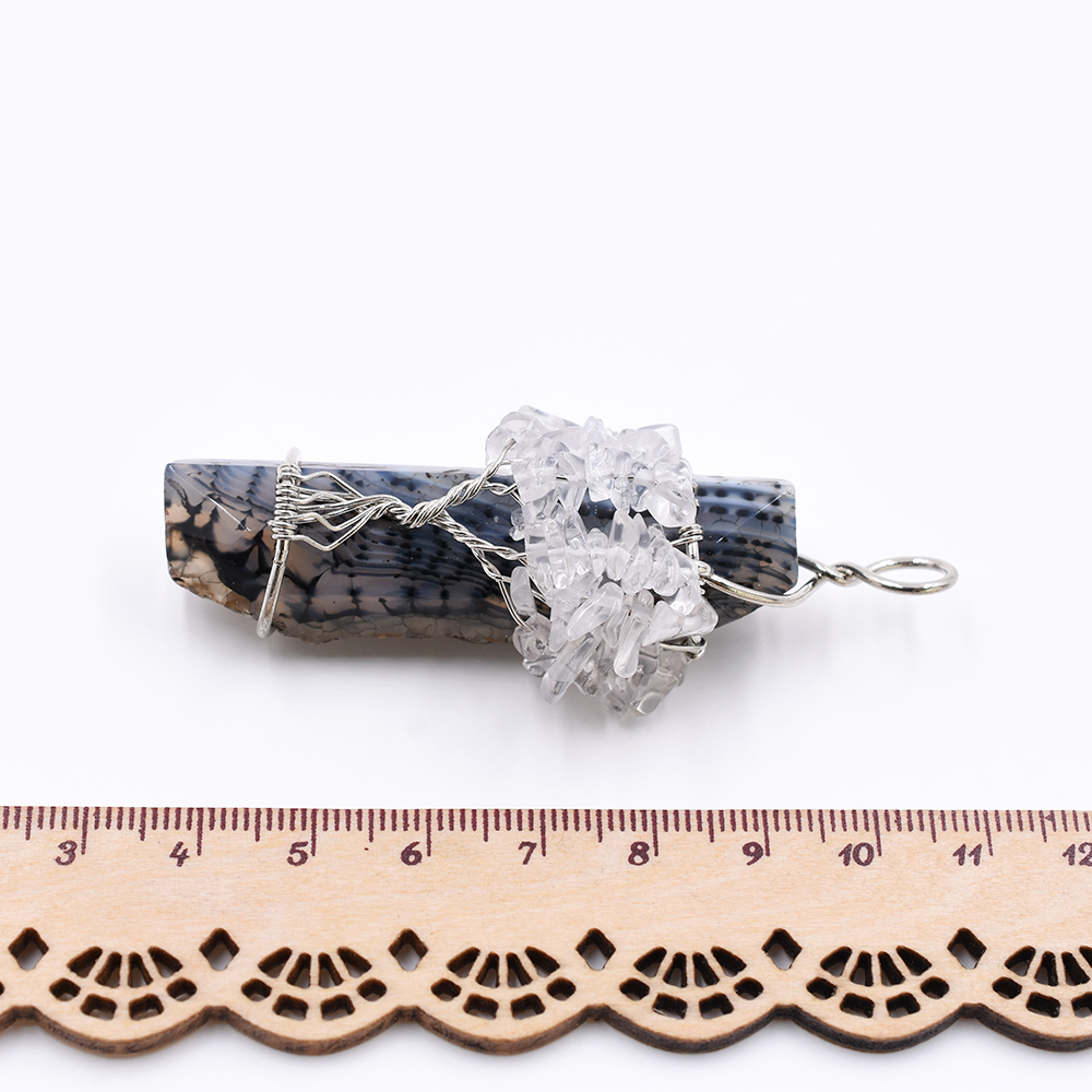 天然石チャーム 不規則カット 1カン ブラウンアゲート 天然石ビーズ付き 72x26mm ロジウム (1ヶ)