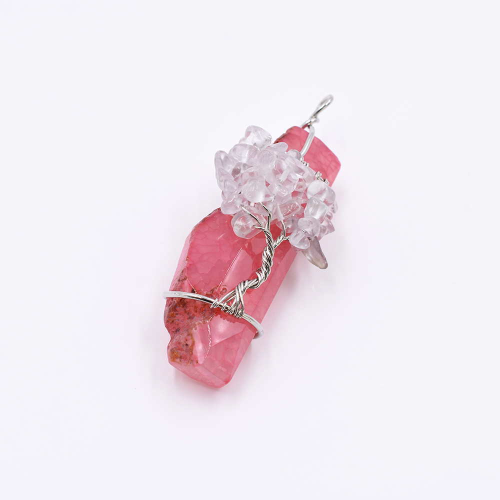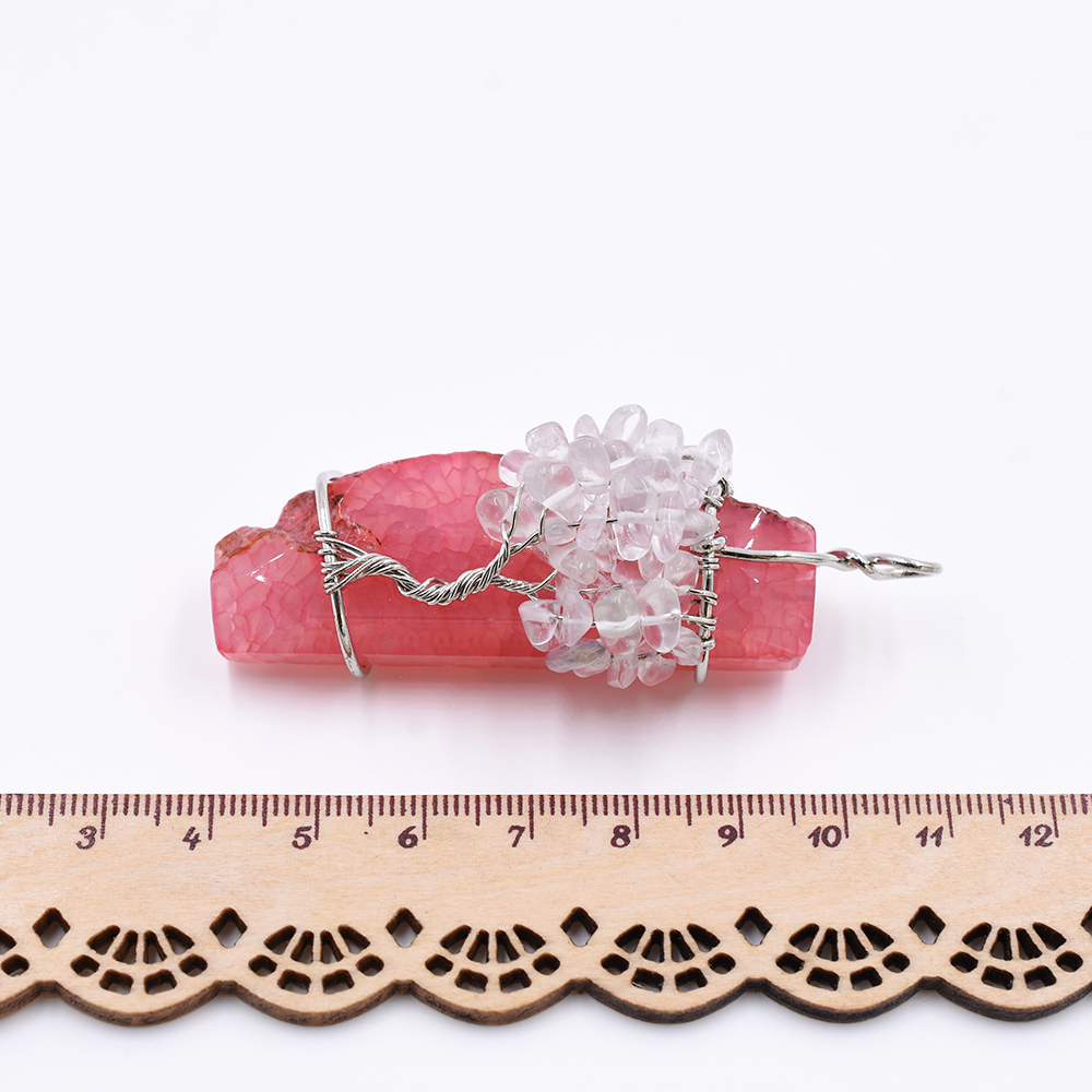 天然石チャーム 不規則カット 1カン ピンクアゲート 天然石ビーズ付き 71x25mm ロジウム (1ヶ)