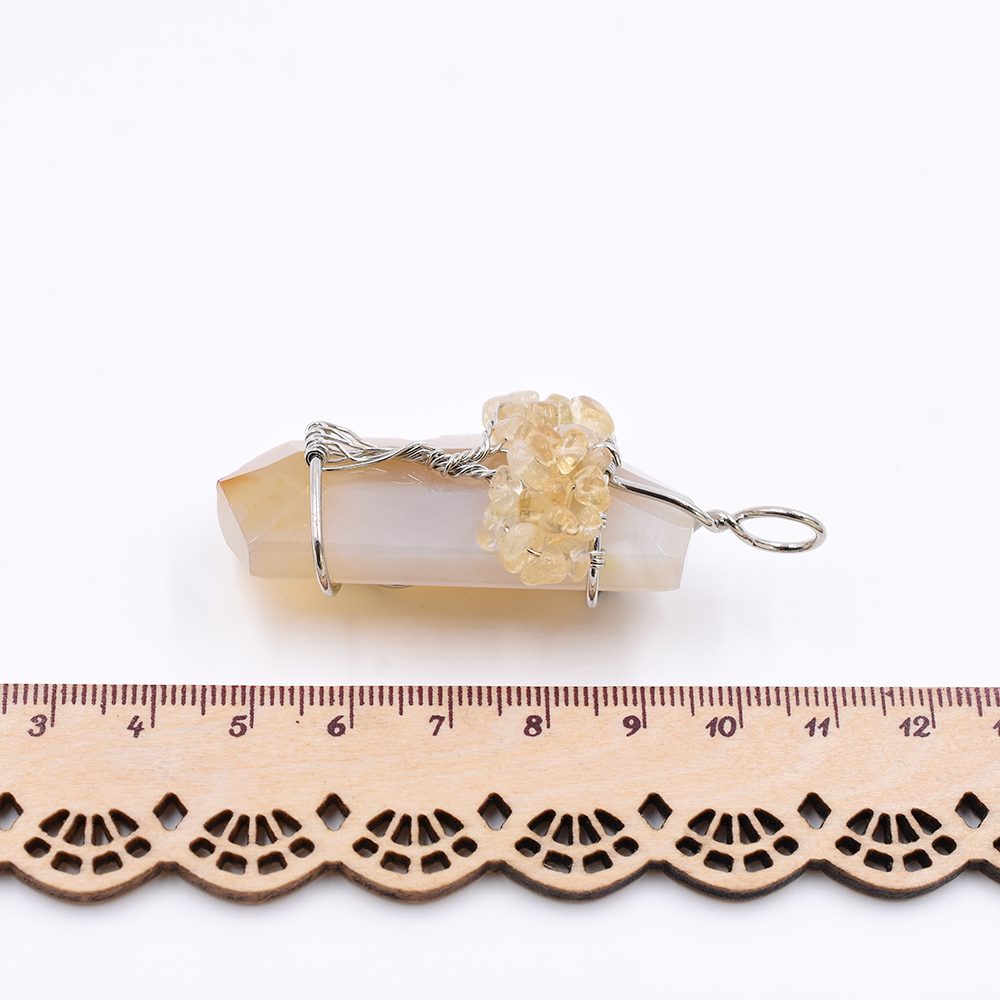 天然石チャーム 不規則カット 1カン アイボリーアゲート 天然石ビーズ付き 63x30mm ロジウム (1ヶ)
