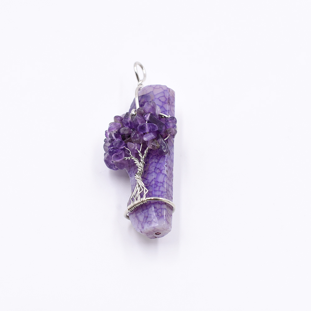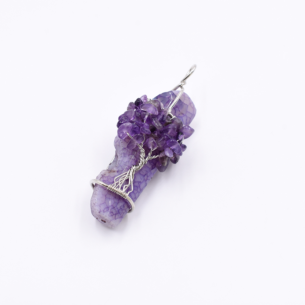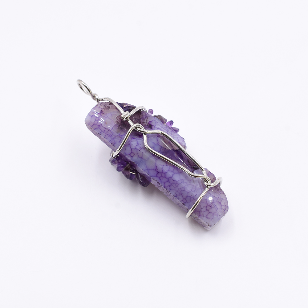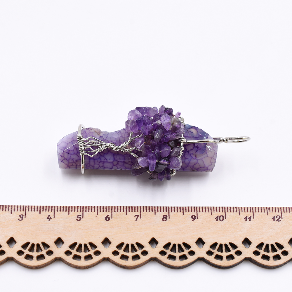 天然石チャーム 不規則カット 1カン パープルアゲート 天然石ビーズ付き 69x26mm ロジウム (1ヶ)