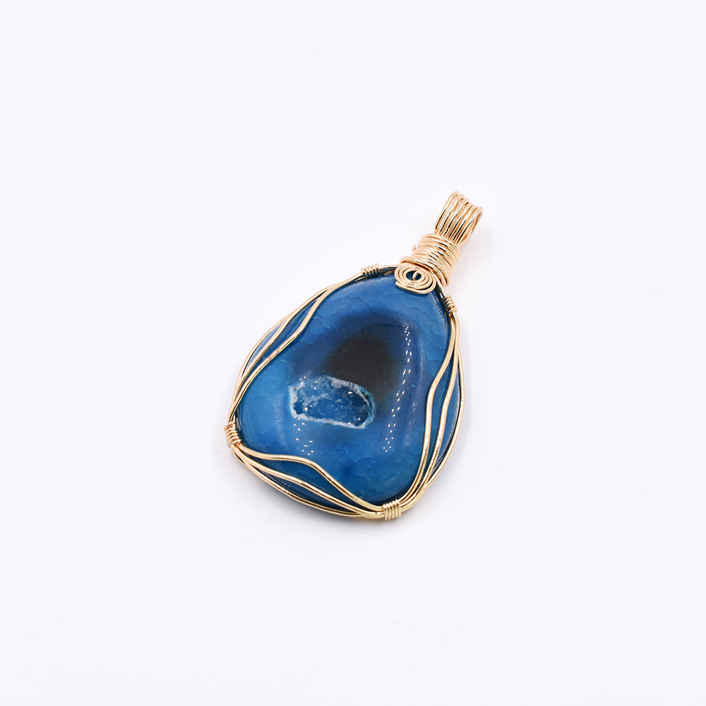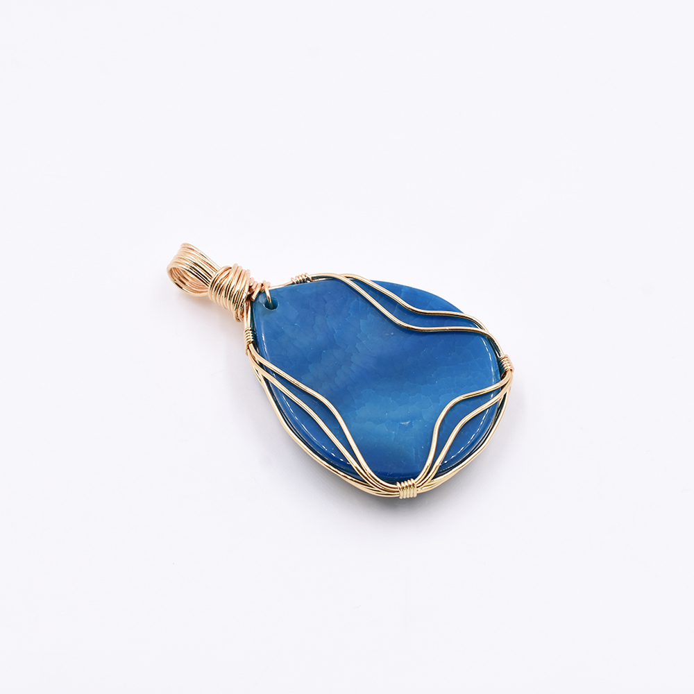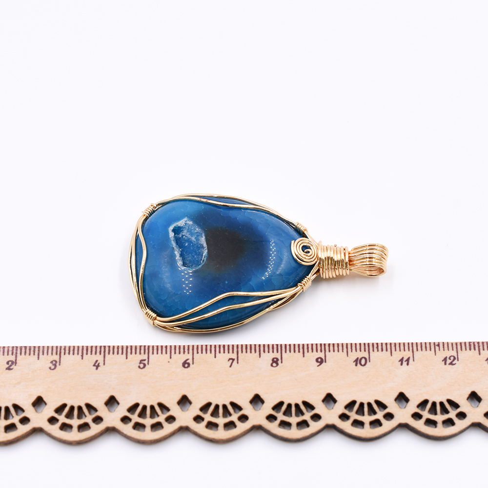 天然石チャーム しずく型 1カン ブルーアゲート 61x36mm ゴールド (1ヶ)