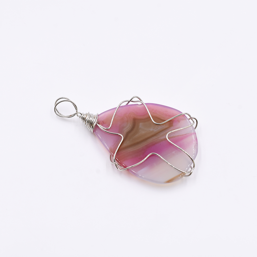 天然石チャーム しずく型 1カン パープルアゲート 73x39mm ロジウム (1ヶ)