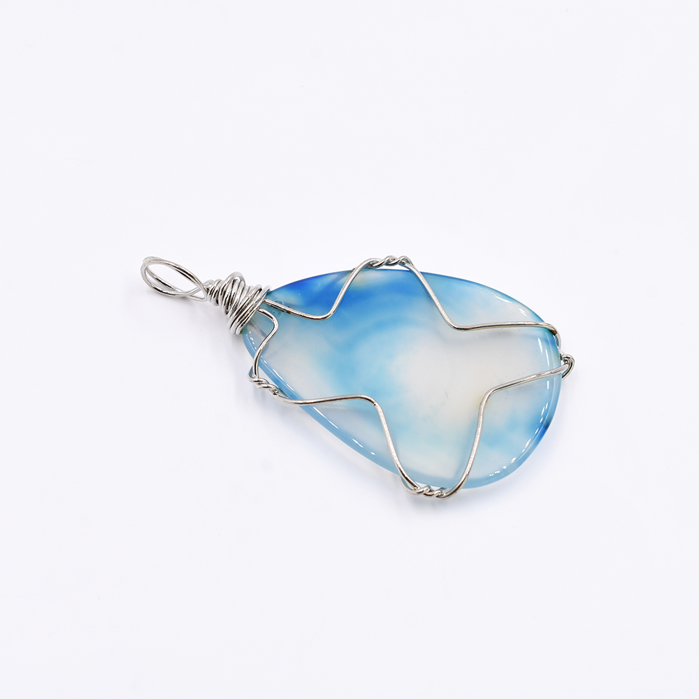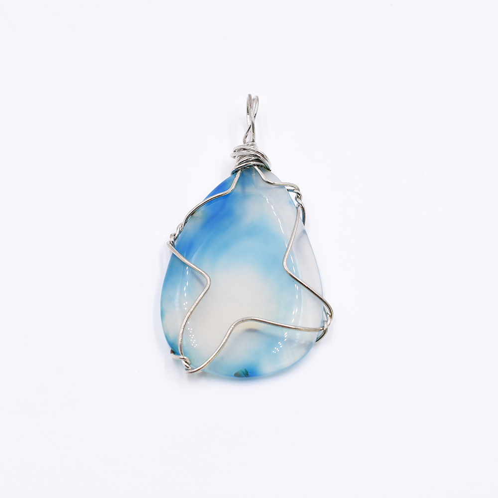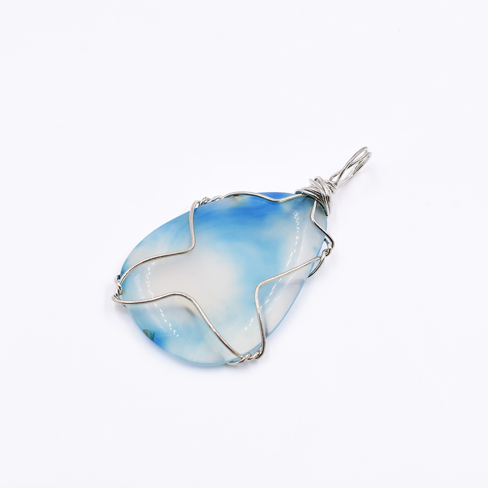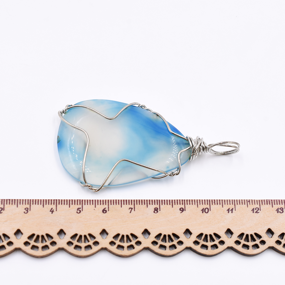 天然石チャーム しずく型 1カン ブルーアゲート 73x40mm ロジウム (1ヶ)