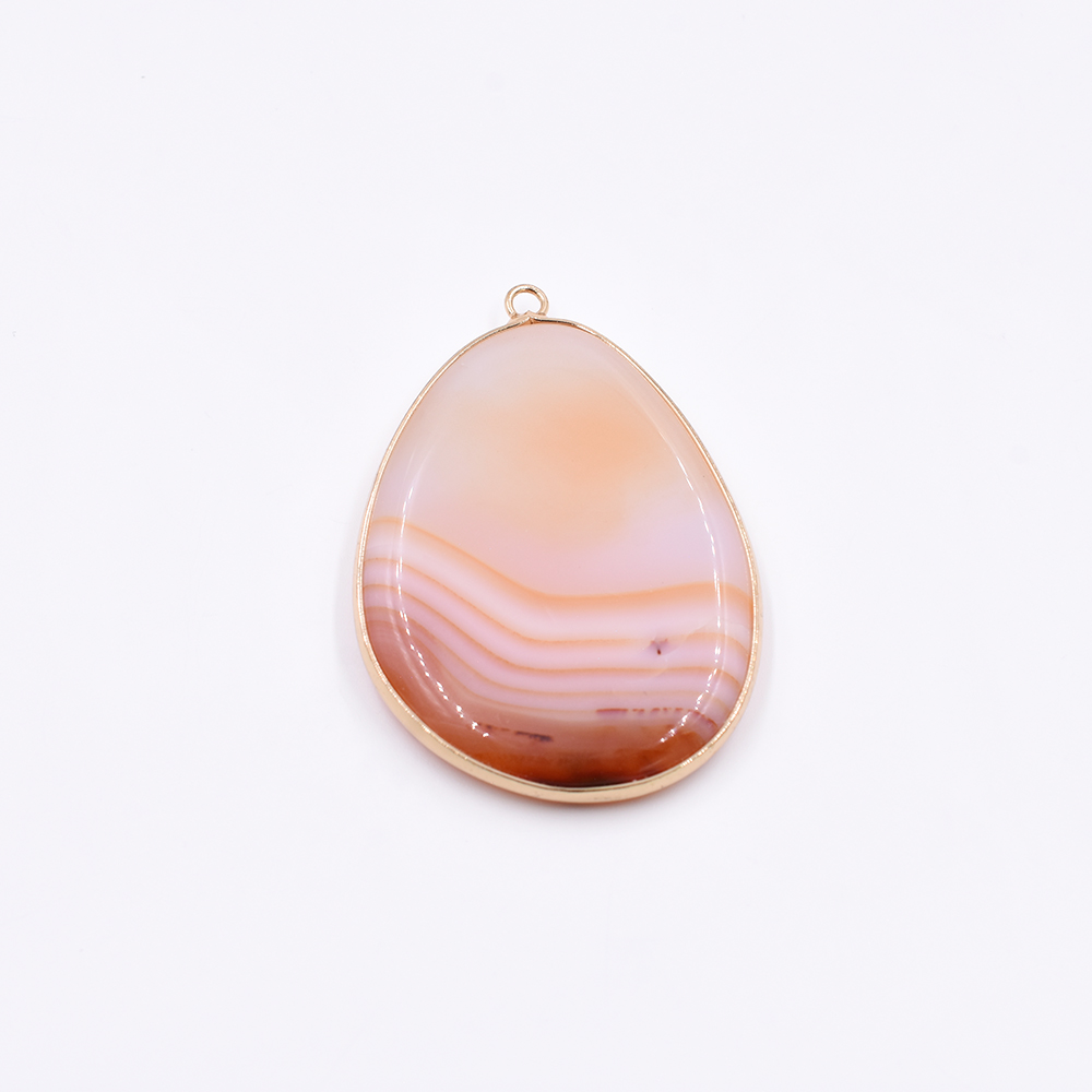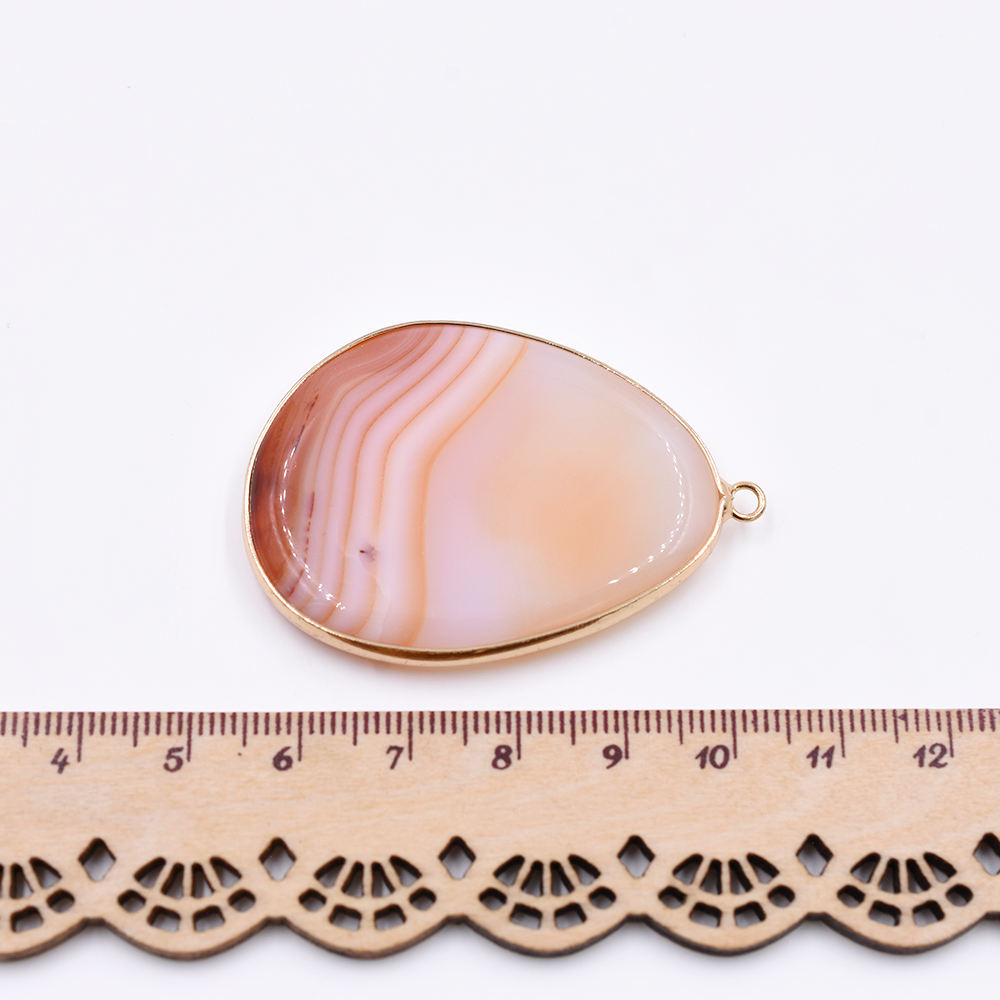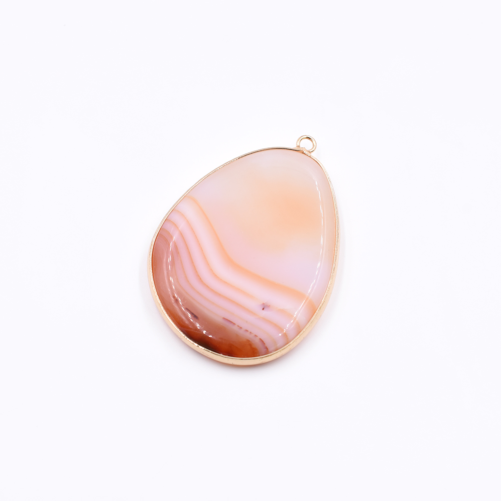 天然石フレームチャーム しずく型 1カン ブラウンアゲート 50x35mm ゴールド(1ヶ)