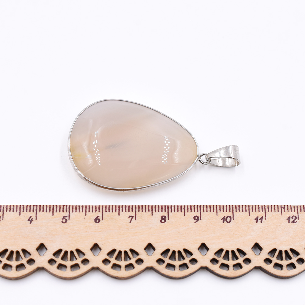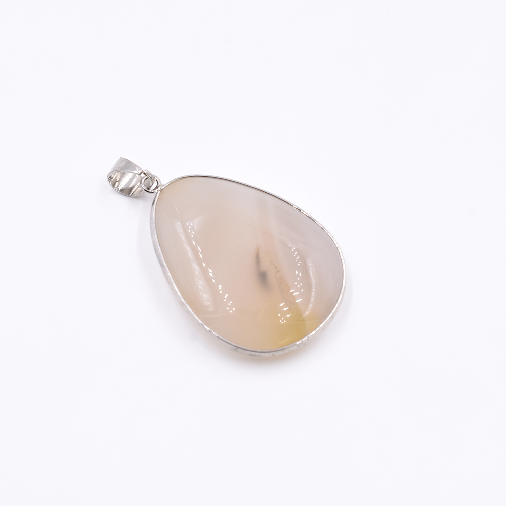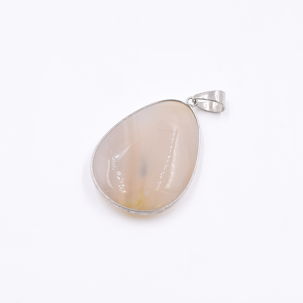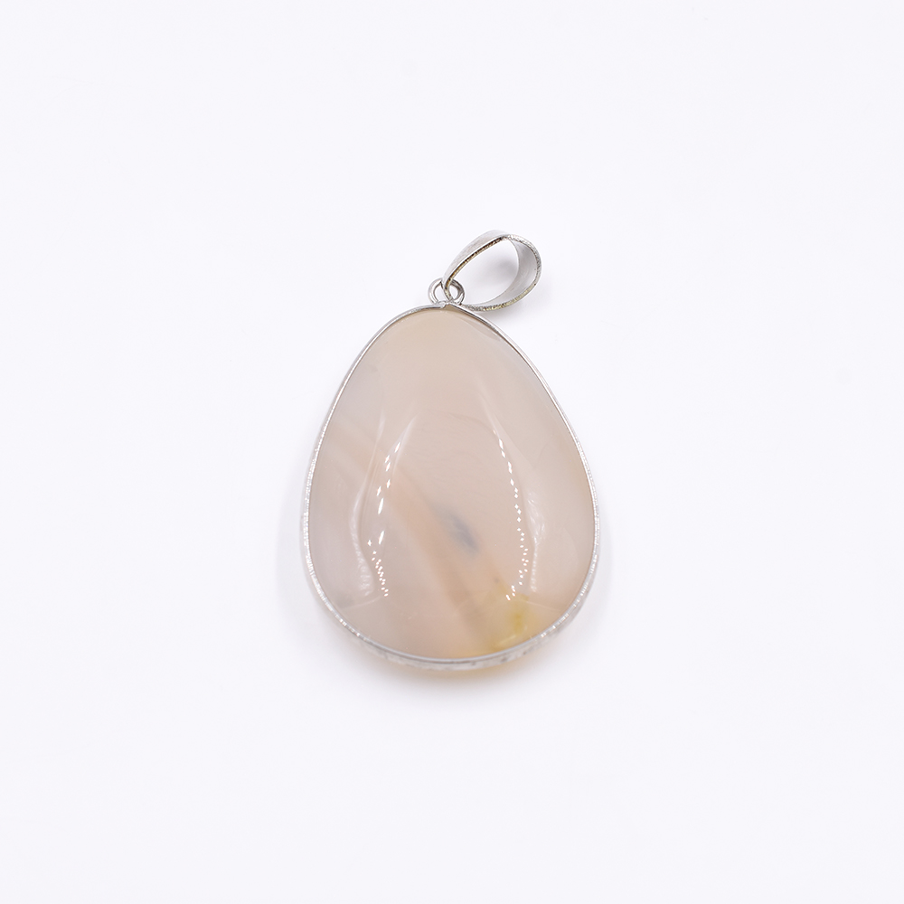 天然石ペンダントトップ しずく型 1カン アイボリーアゲート 45x31mm ロジウム (1ヶ)