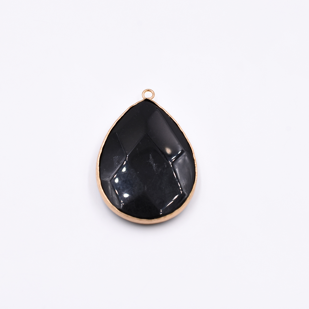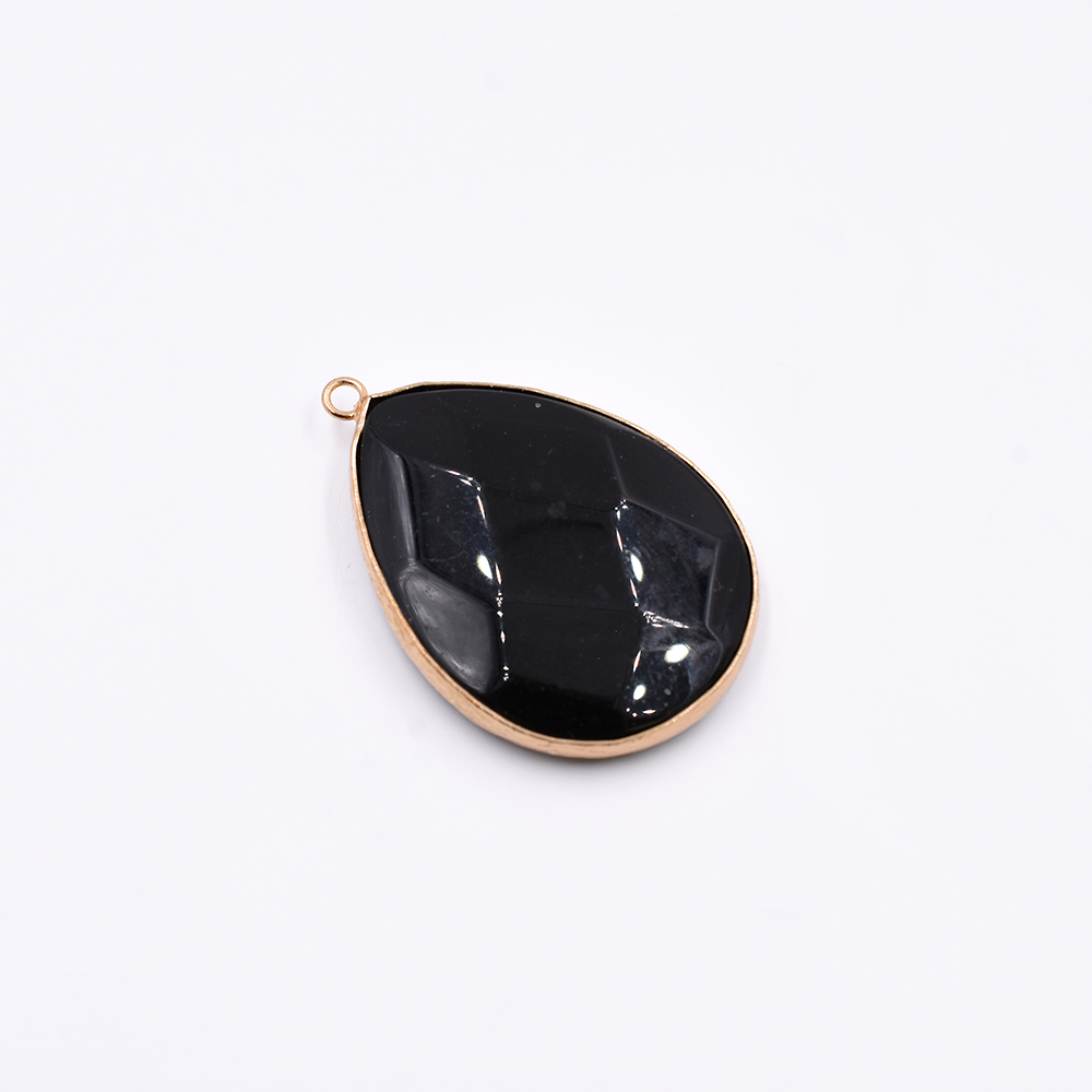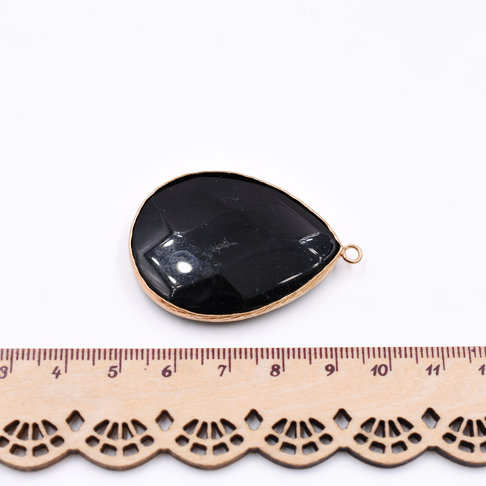 天然石フレームチャーム しずく型カット 1カン ブラックアゲート 44x30mm ゴールド(1ヶ)