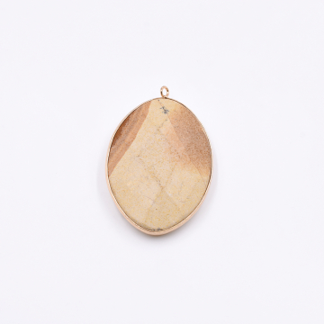 天然石フレームチャーム オーバルカット 1カン ピクチャージャスパー 54x36mm ゴールド(1ヶ)