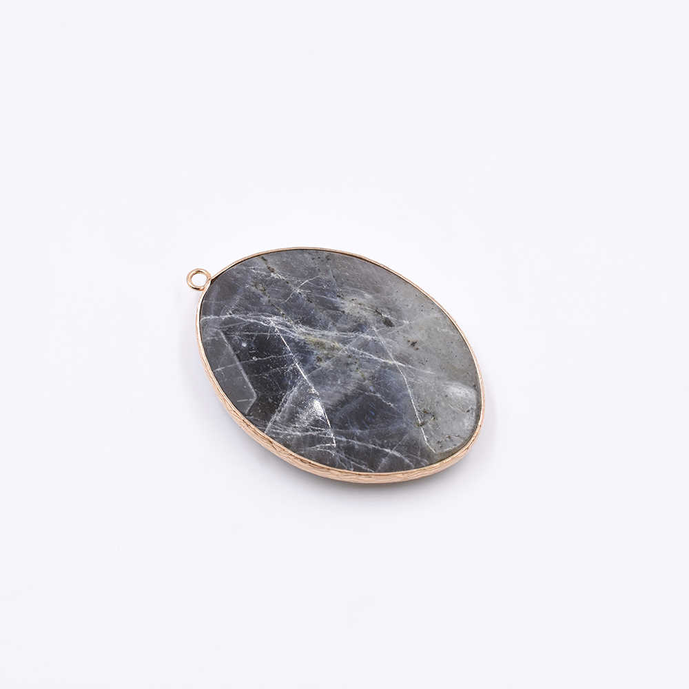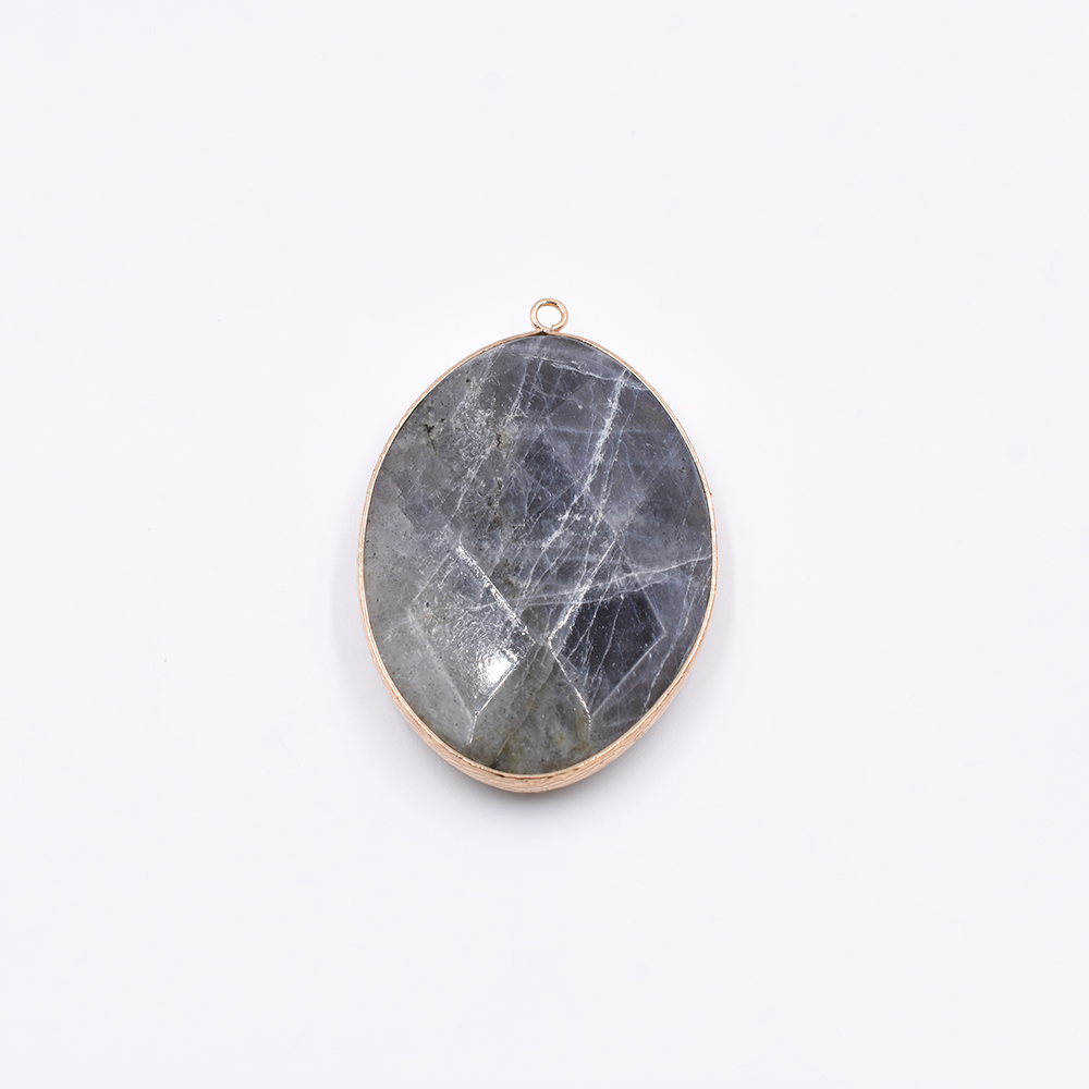 天然石フレームチャーム オーバルカット 1カン ラブラドライト 54x36mm ゴールド(1ヶ)