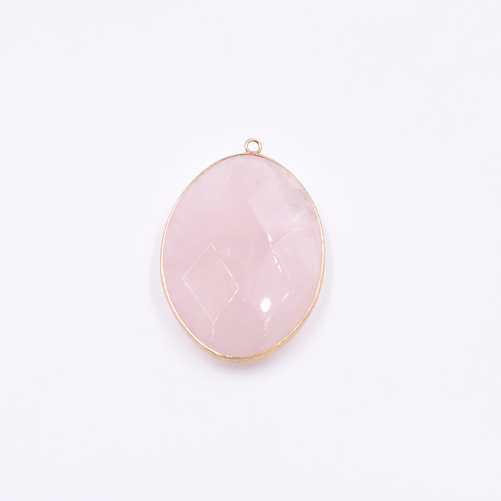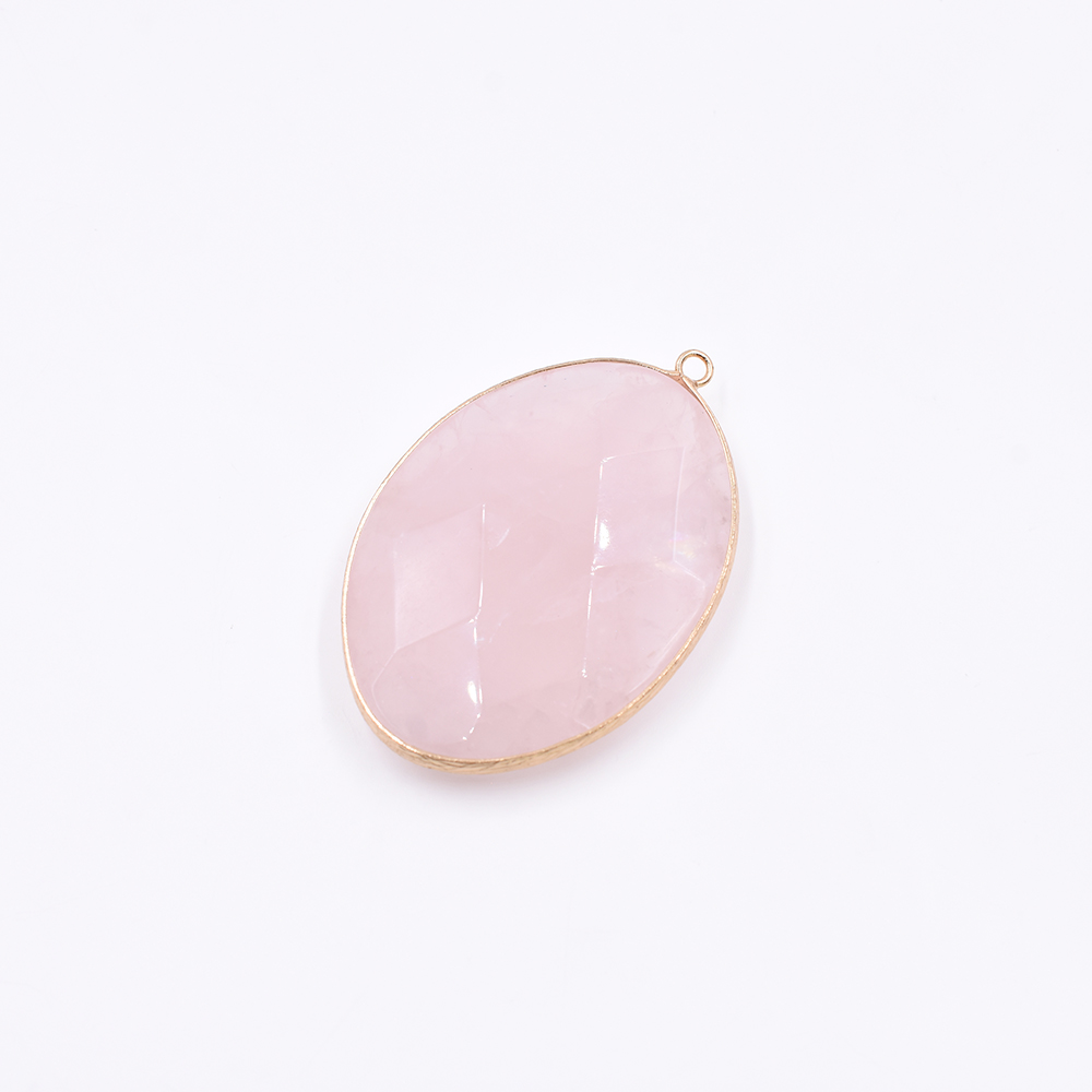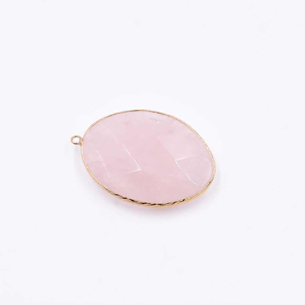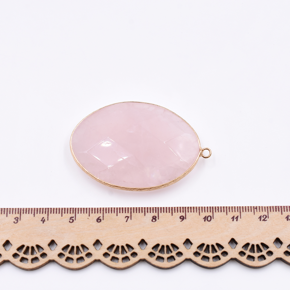 天然石フレームチャーム オーバルカット 1カン ローズクォーツ 53x36mm ロジウム (1ヶ)