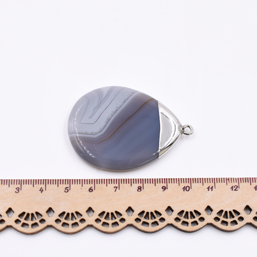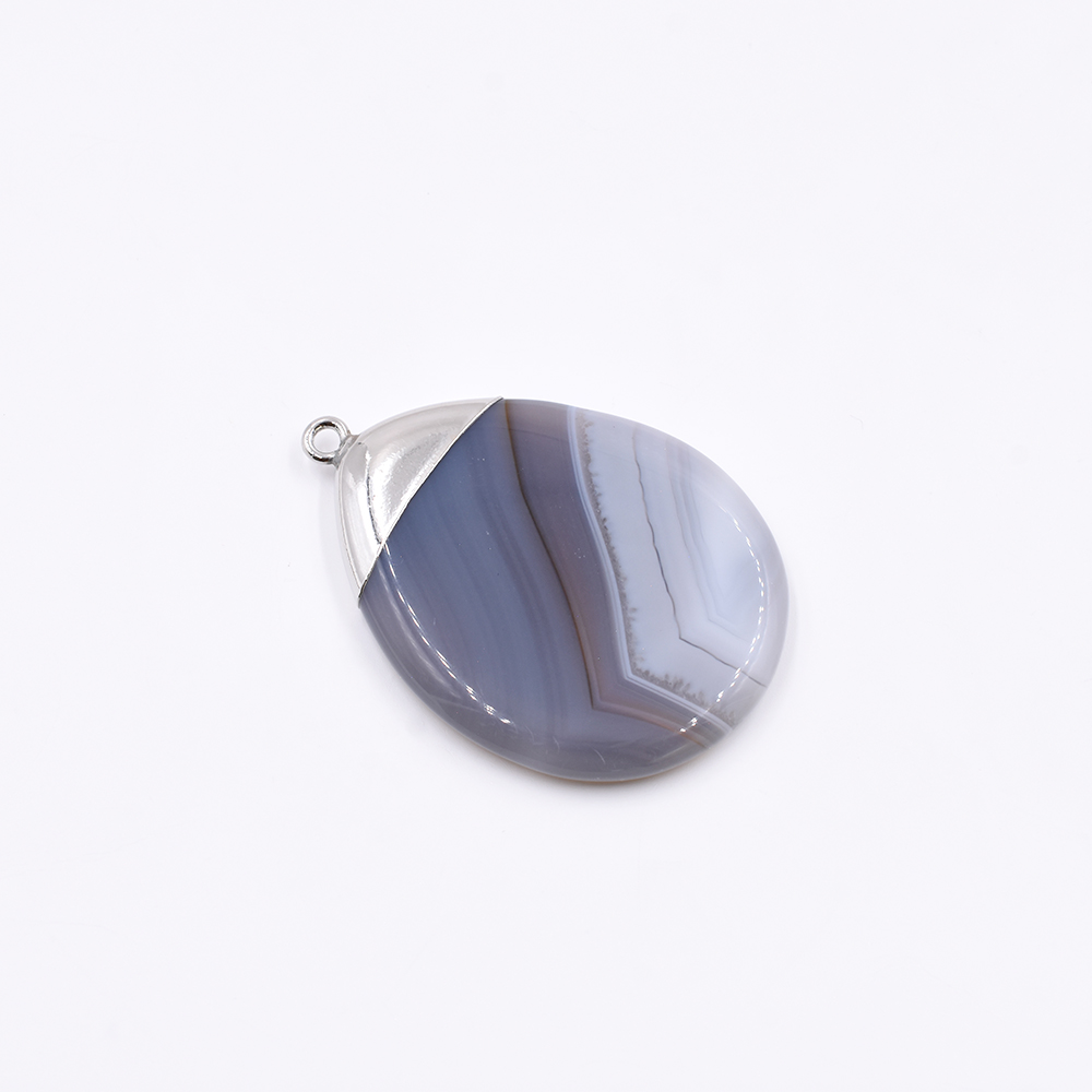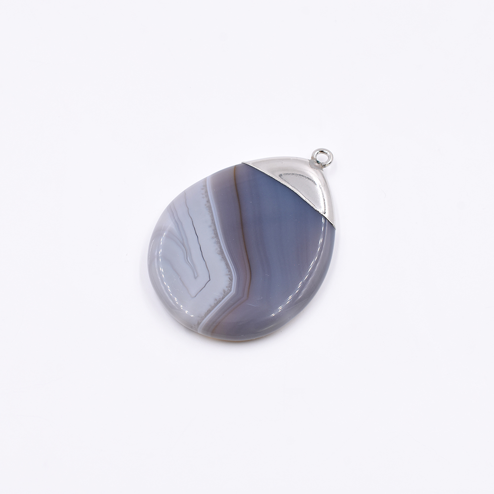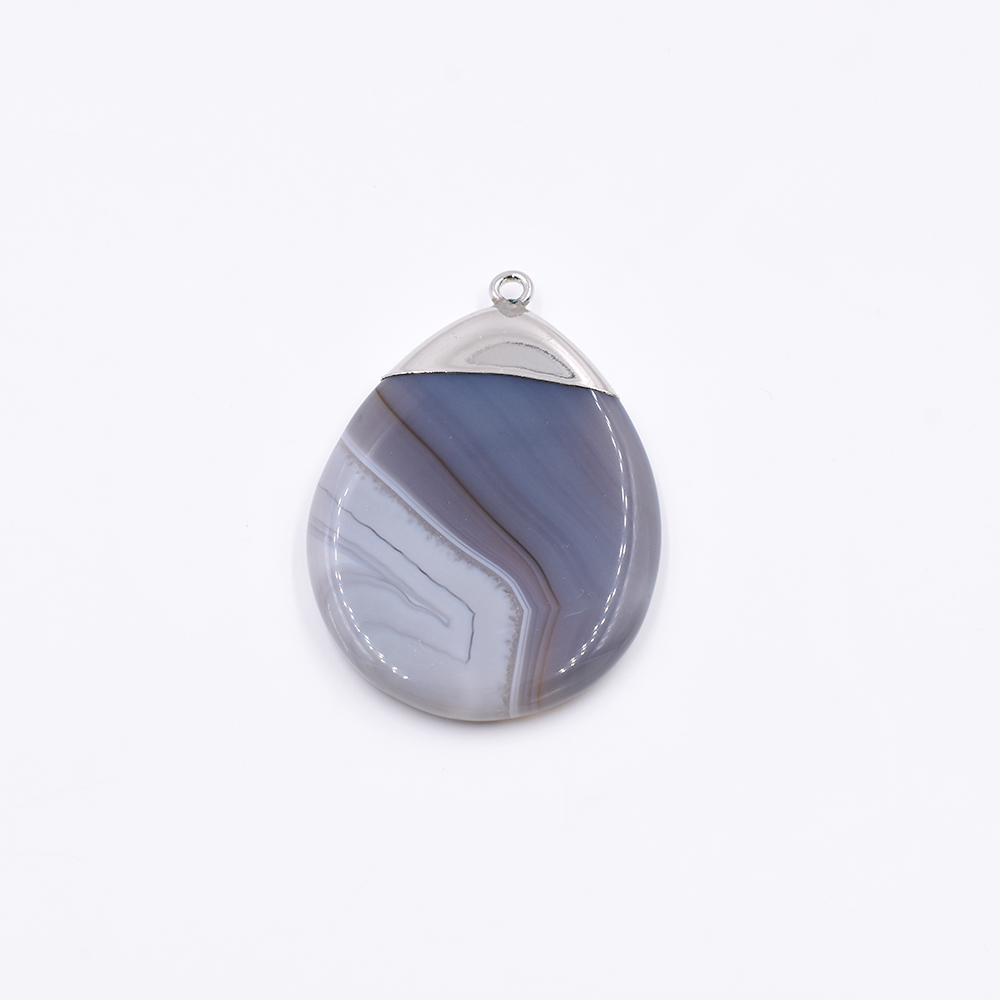 天然石チャーム しずく型 1カン グレーアゲート 53x39mm ロジウム (1ヶ)