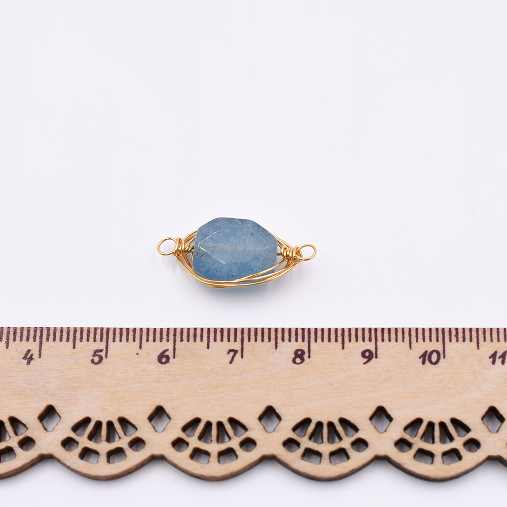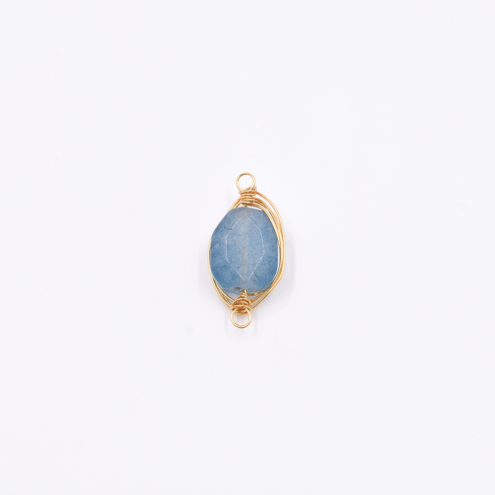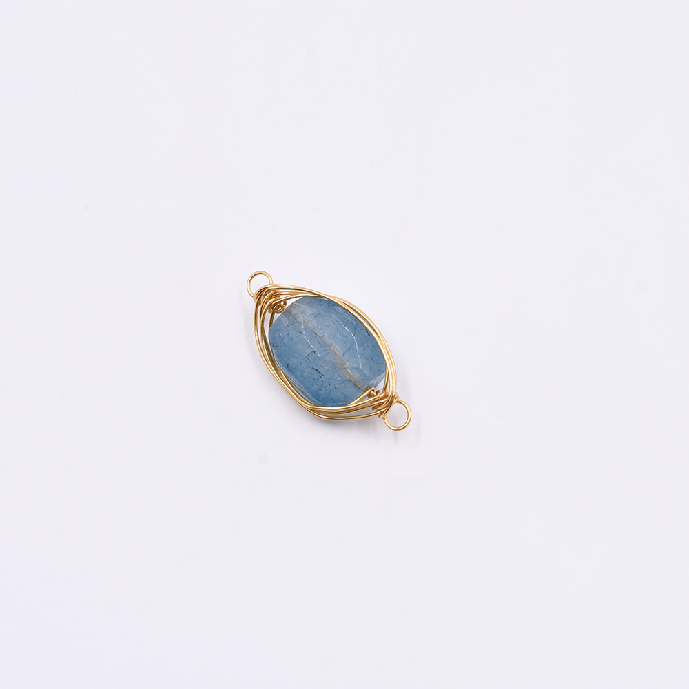天然石コネクターチャーム オーバル 2カン ブルーアゲート 24x12mm ゴールド(1ヶ)