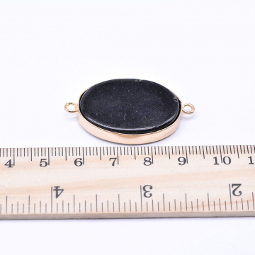 天然石コネクターチャーム オーバルカット 2カン ブルーアゲート 24x12mm ゴールド(1ヶ)