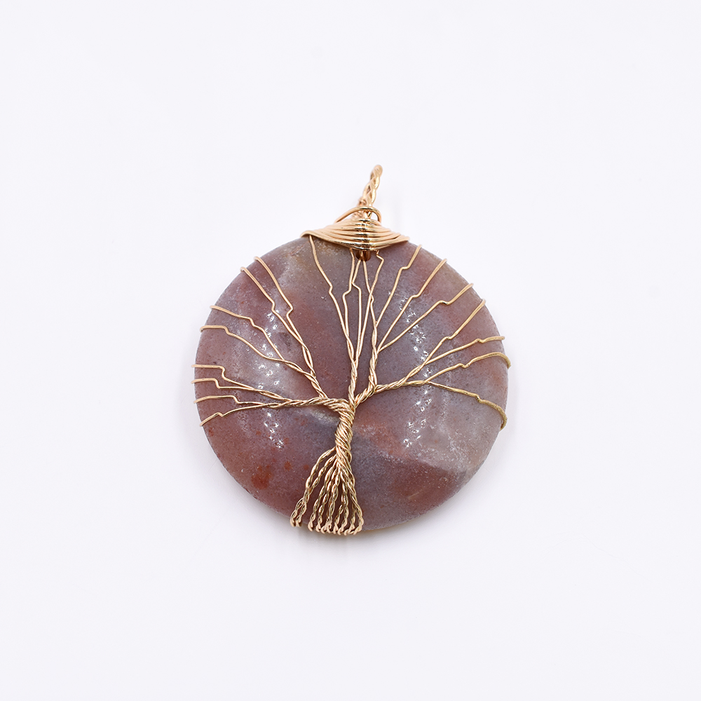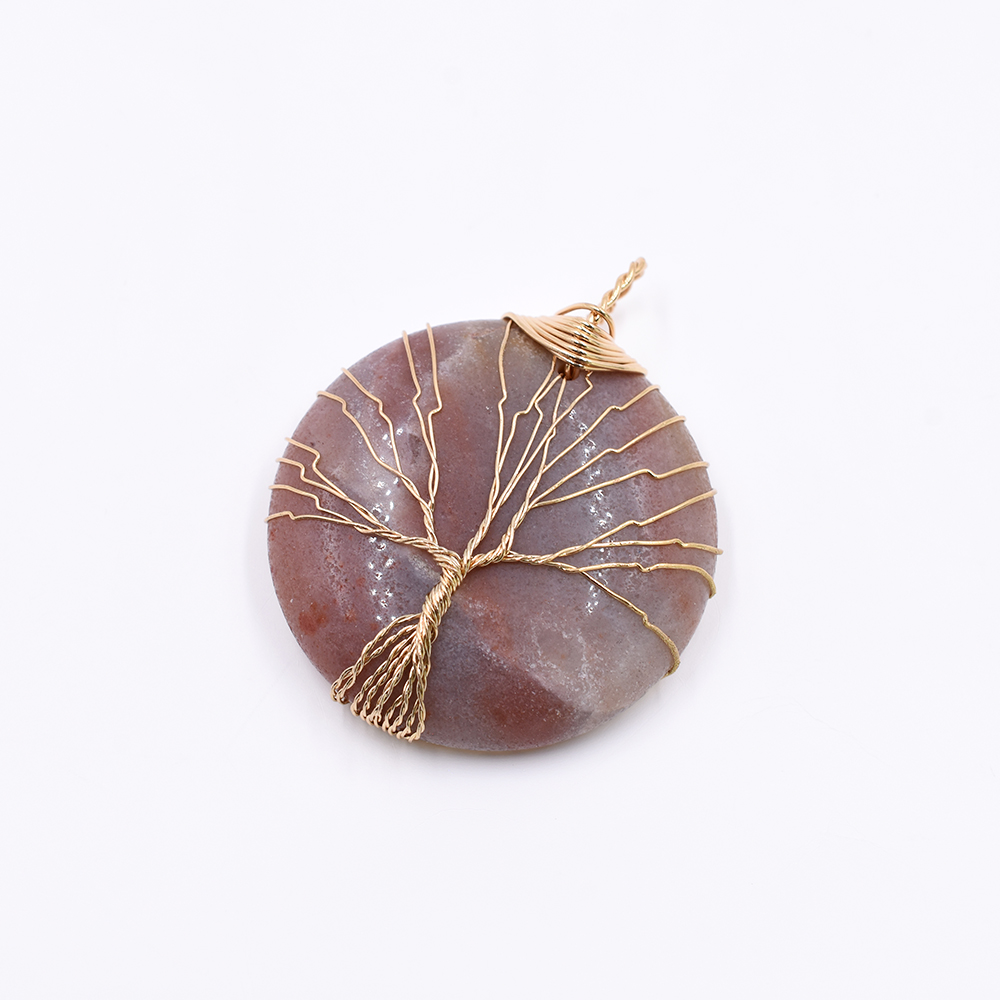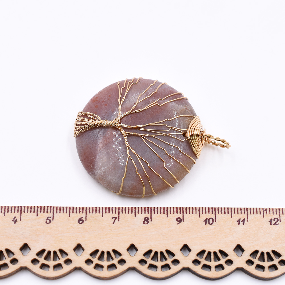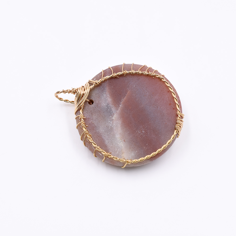 天然石チャーム ラウンド 1カン ブラウンアマゾナイト 50x41mm ゴールド(1ヶ)