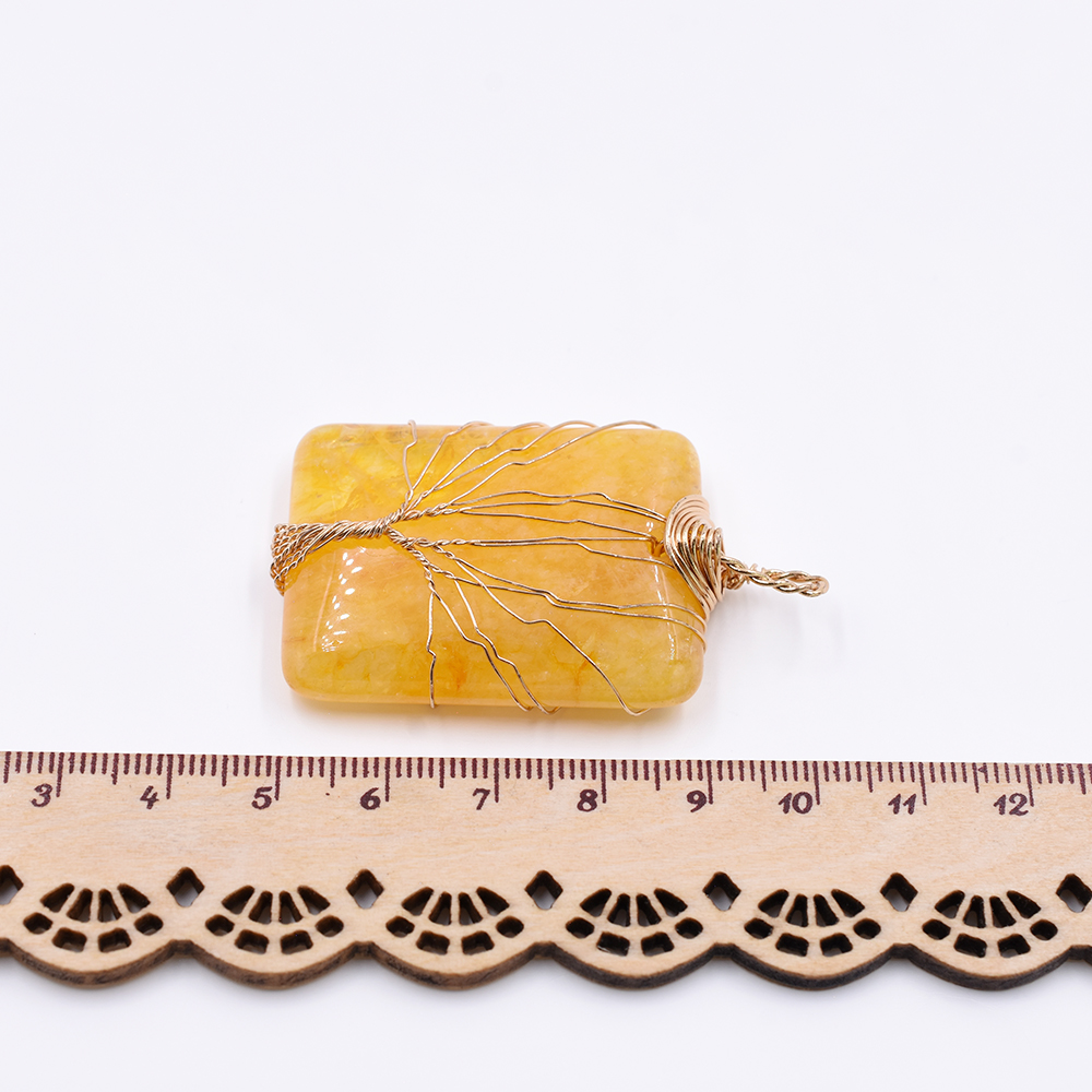 天然石チャーム 長方形型 1カン イエローアゲート 53x31mm ゴールド(1ヶ)