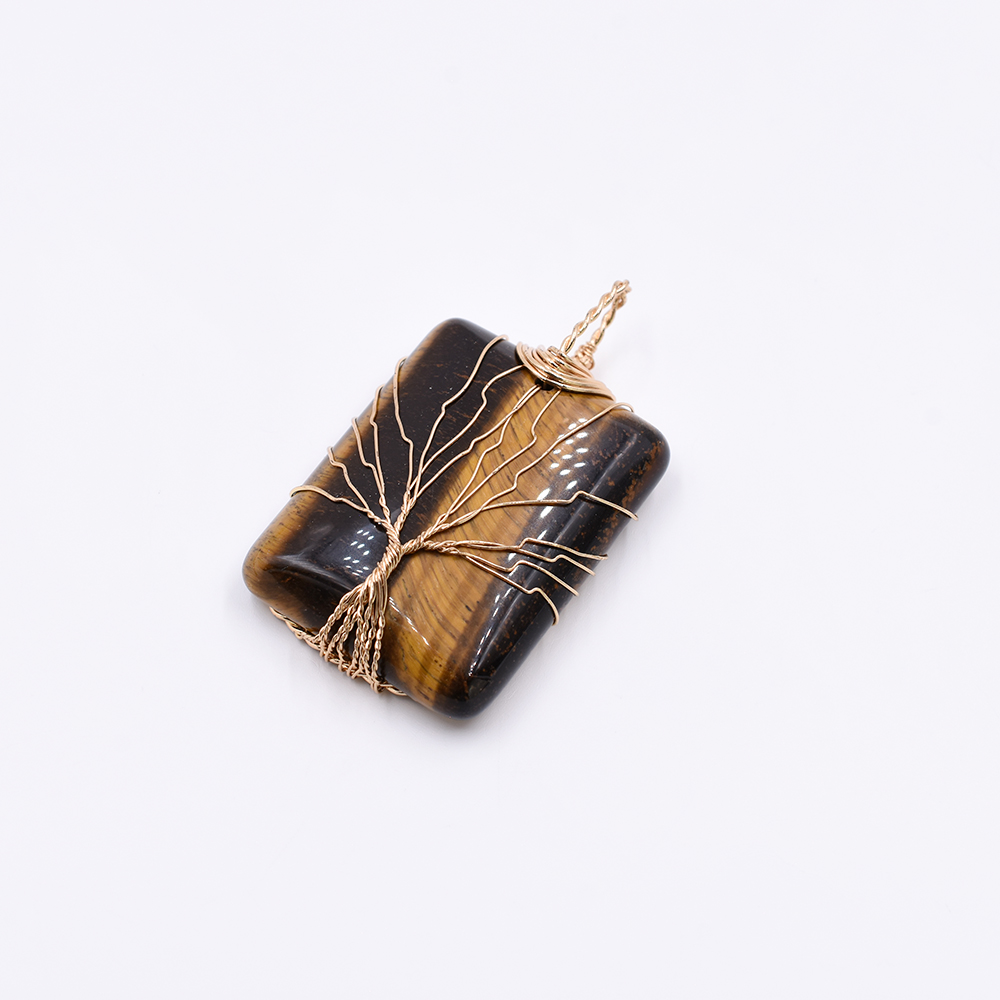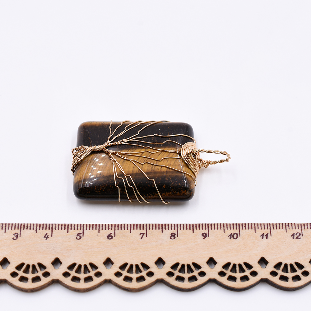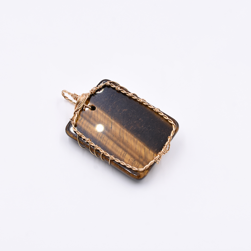 天然石チャーム 長方形型 1カン タイガアイ 53x31mm ゴールド(1ヶ)