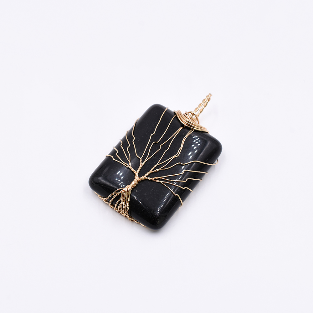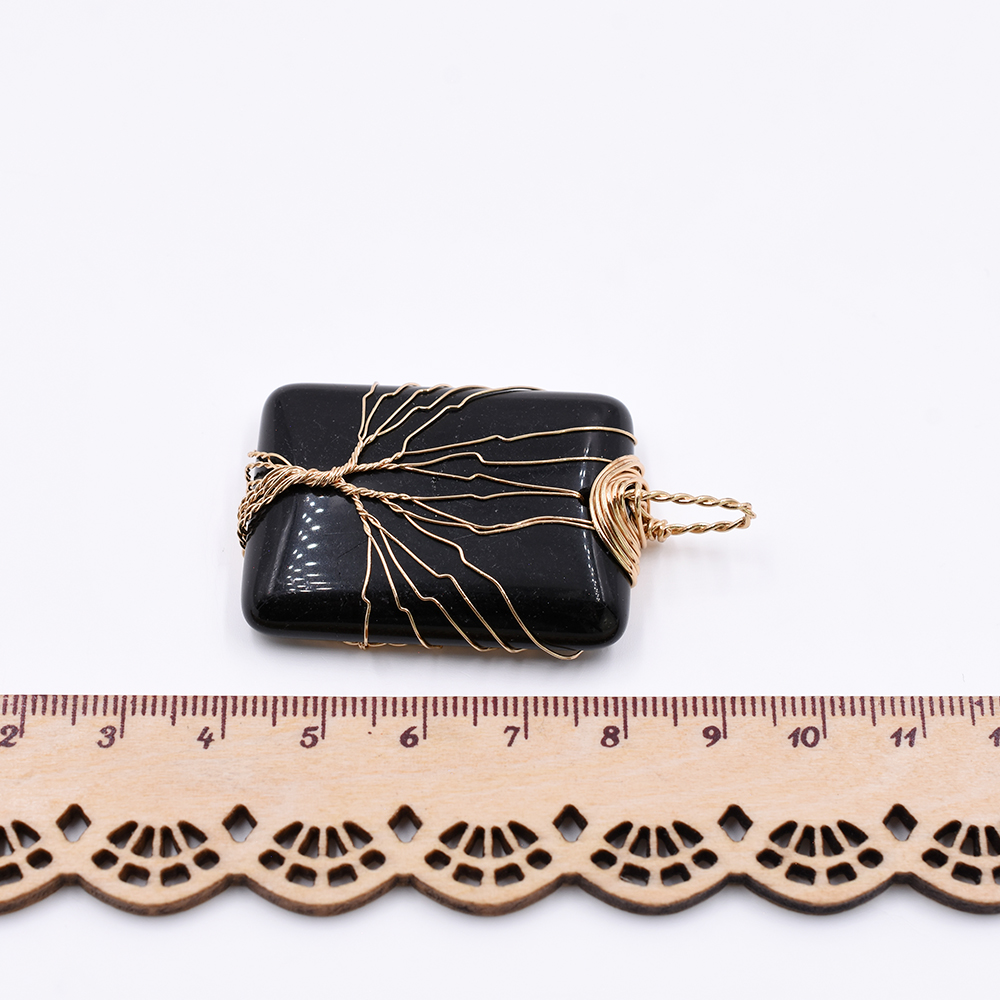 天然石チャーム 長方形型 1カン ブラックアゲート 53x30mm ゴールド(1ヶ)