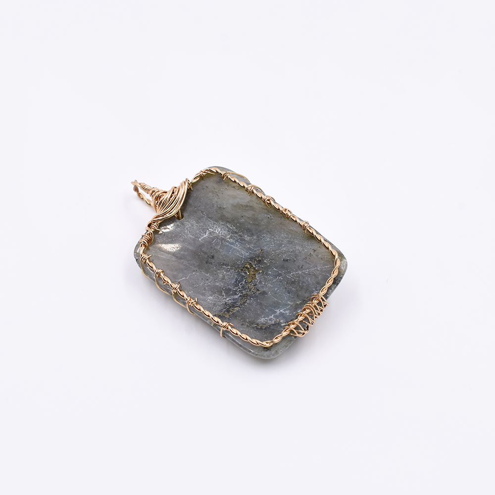 天然石チャーム 長方形型 1カン グレーラブラドライト 53x30mm ゴールド(1ヶ)