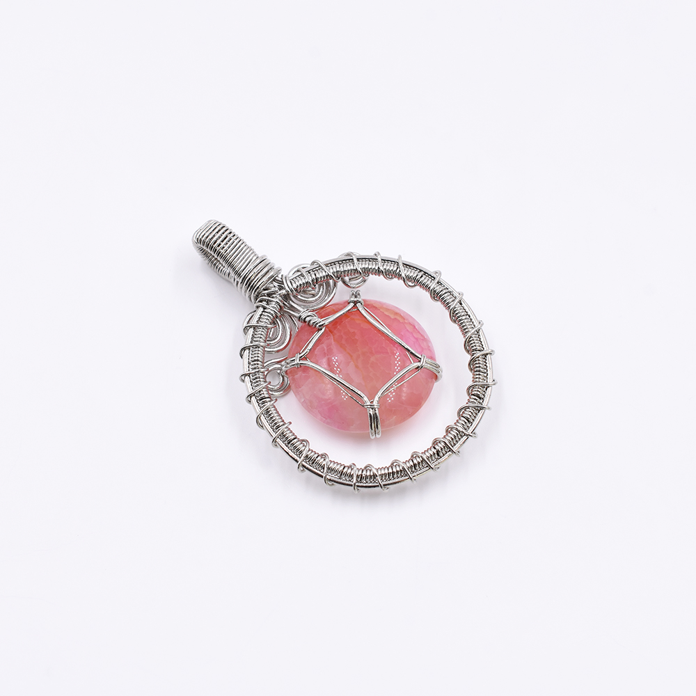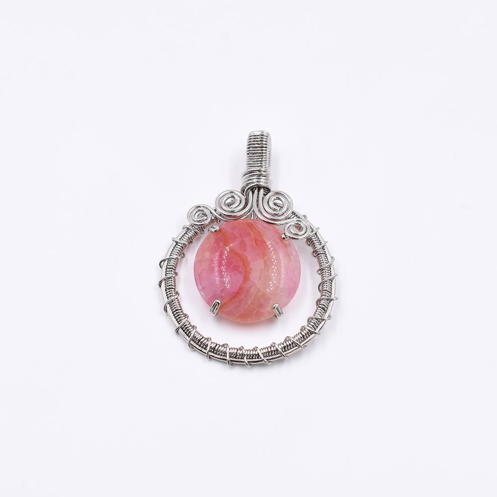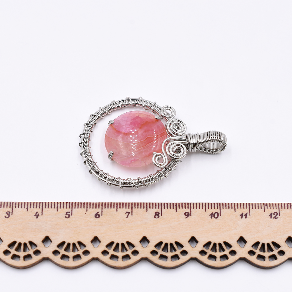天然石チャーム ラウンド 1カン ピンクアゲート 52x37mm ロジウム (1ヶ)