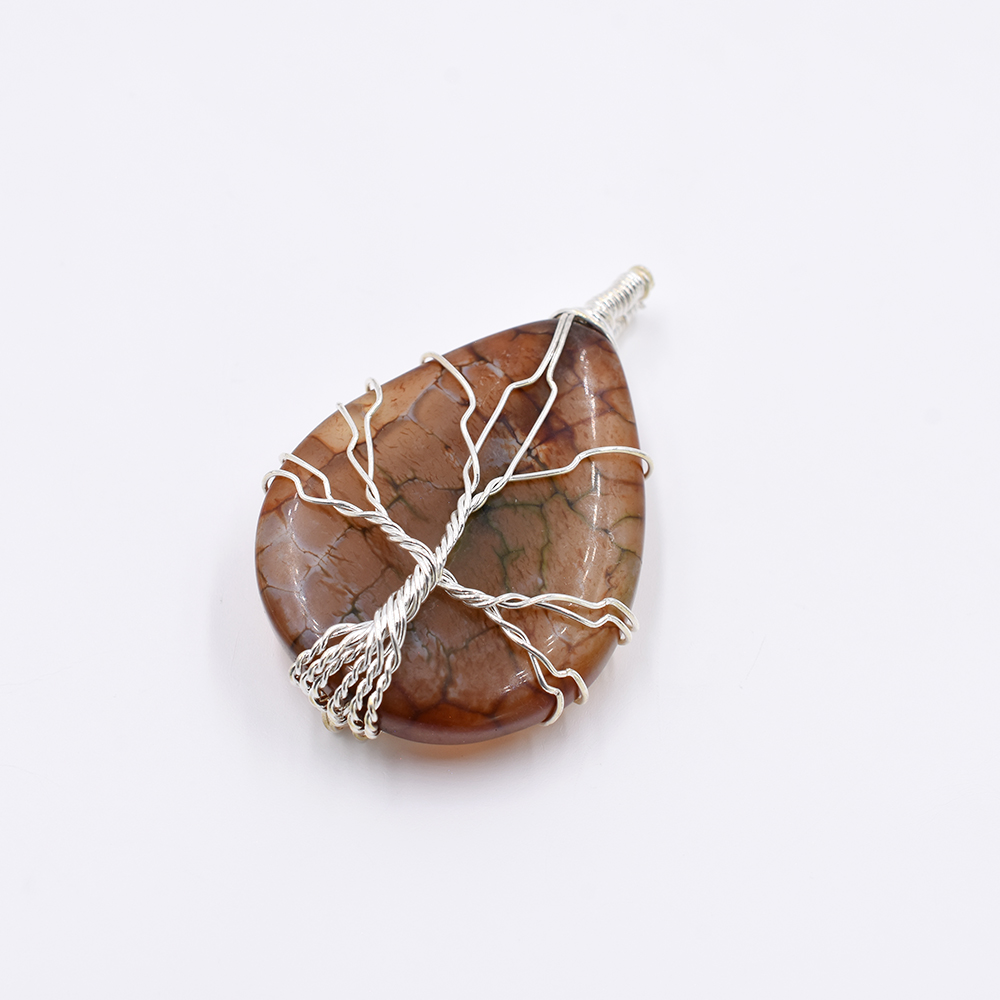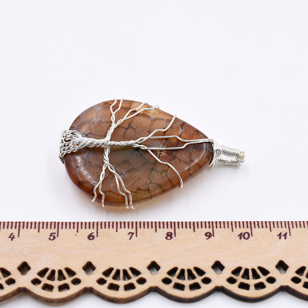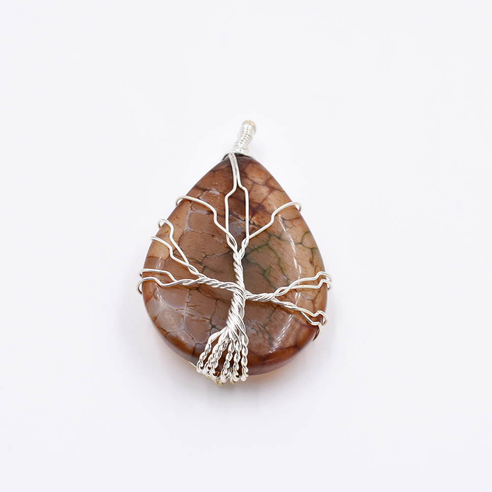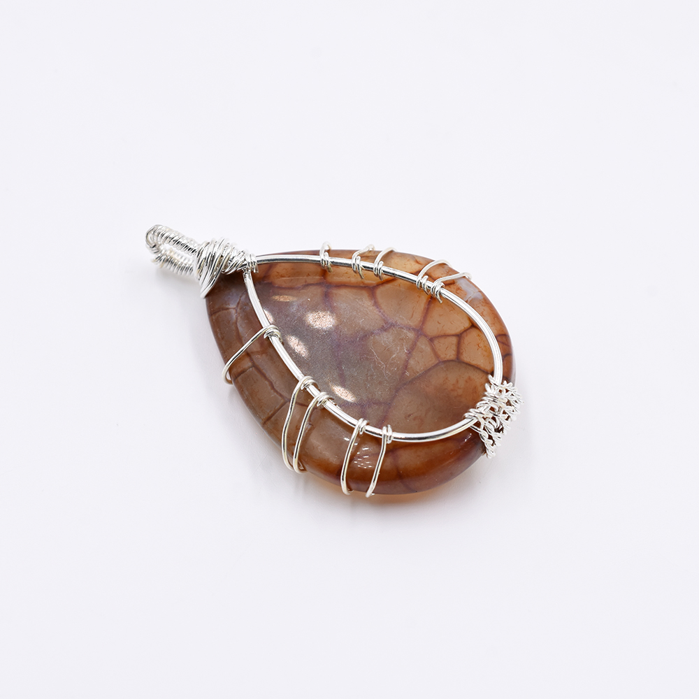 天然石チャーム しずく型 1カン ブラウンアゲート 50x32mm ロジウム (1ヶ)