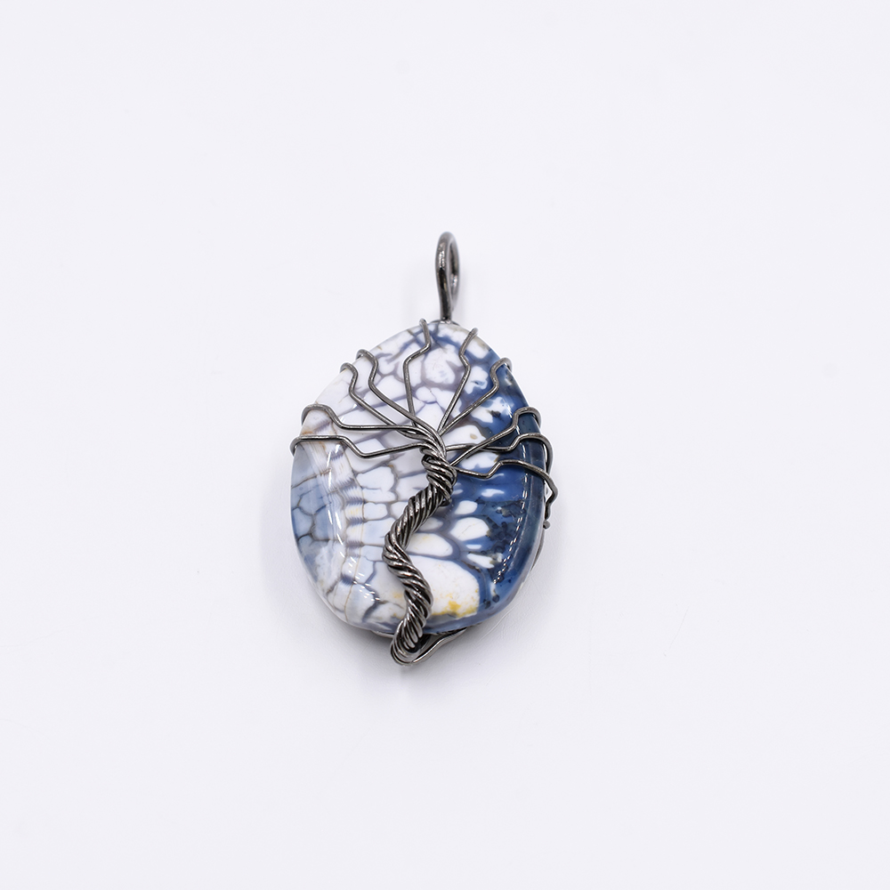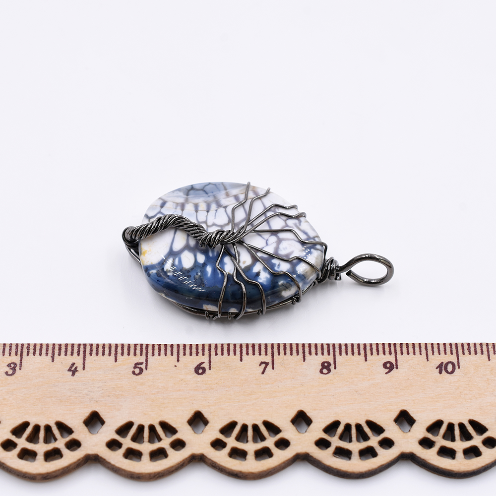 天然石チャーム しずく型 1カン ブルーアゲート 45x24mm ブラックニッケル(1ヶ)