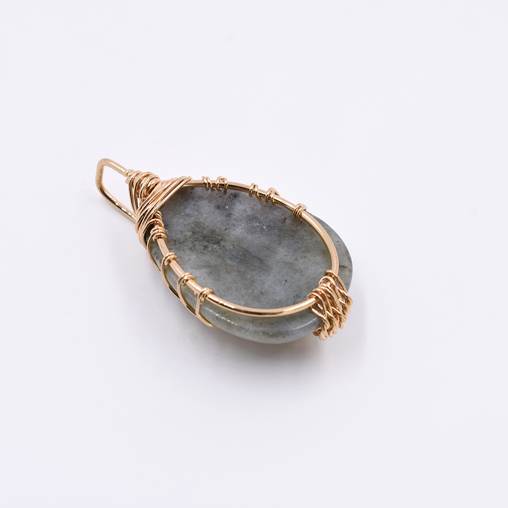 天然石チャーム しずく型 1カン ラブラドライト 47x26mm ゴールド (1ヶ)