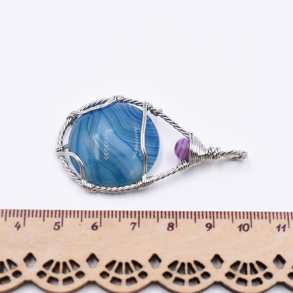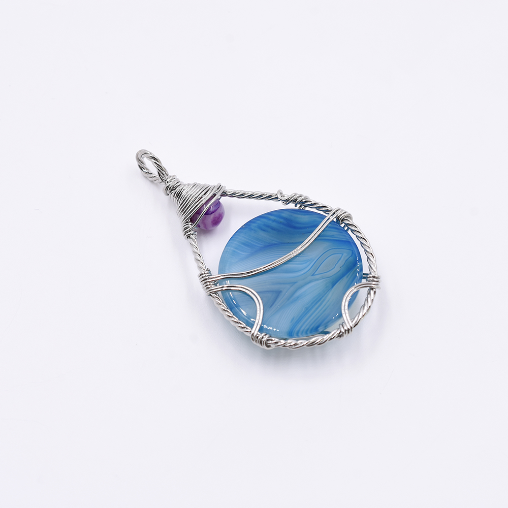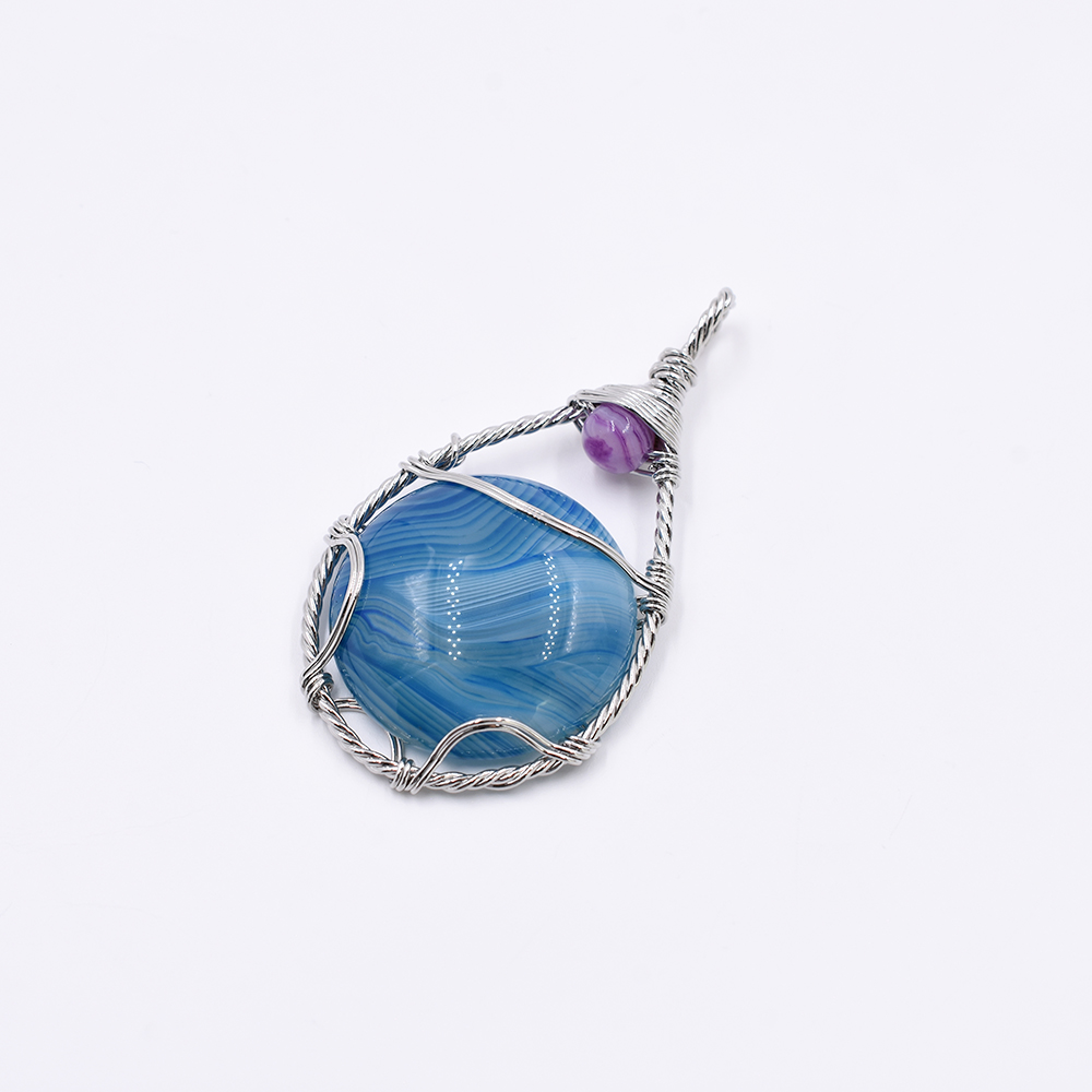 天然石チャーム しずく型 1カン ブルーアゲート 53x30mm ロジウム (1ヶ)