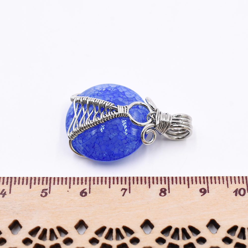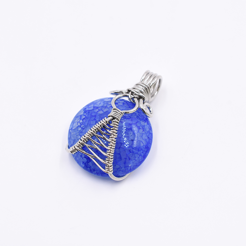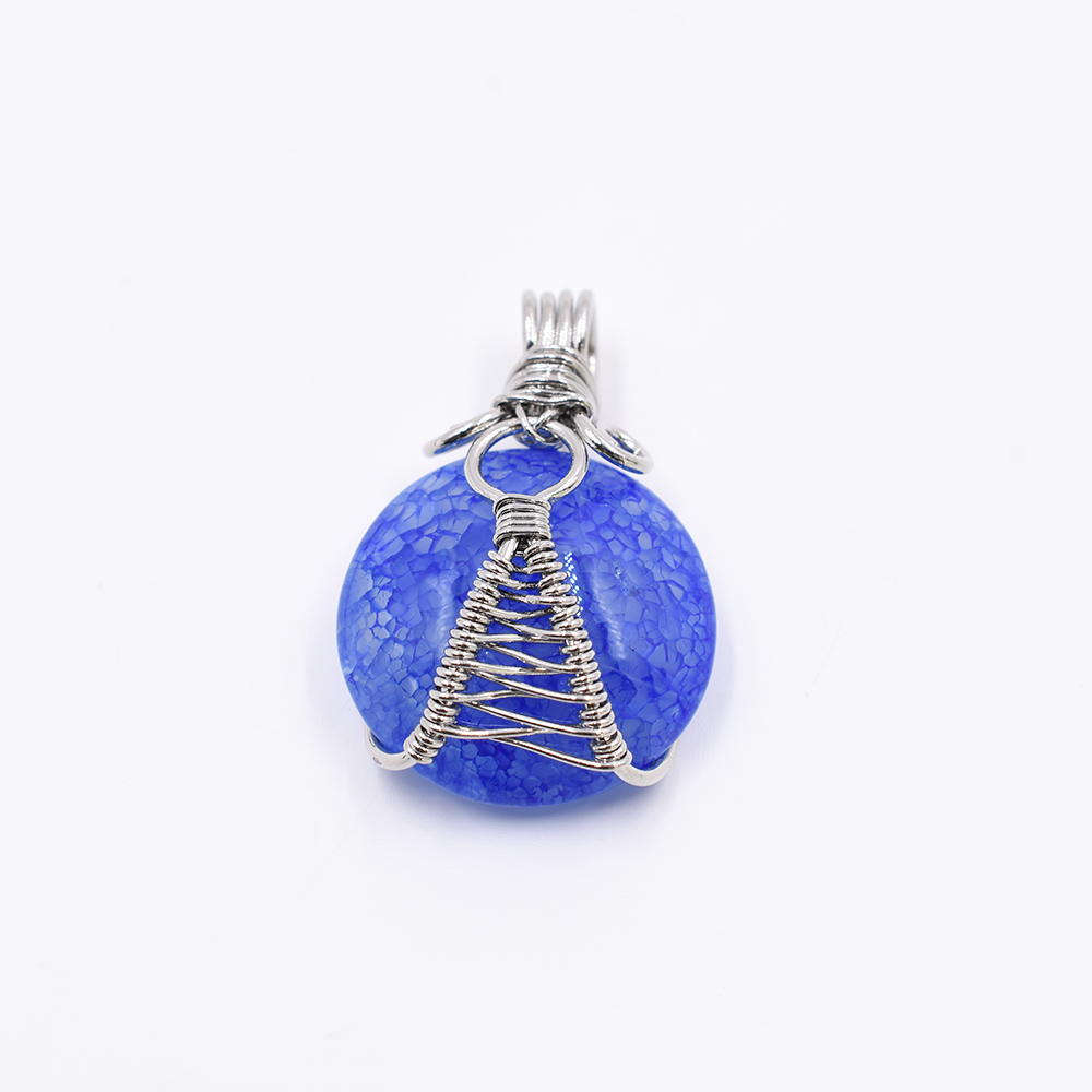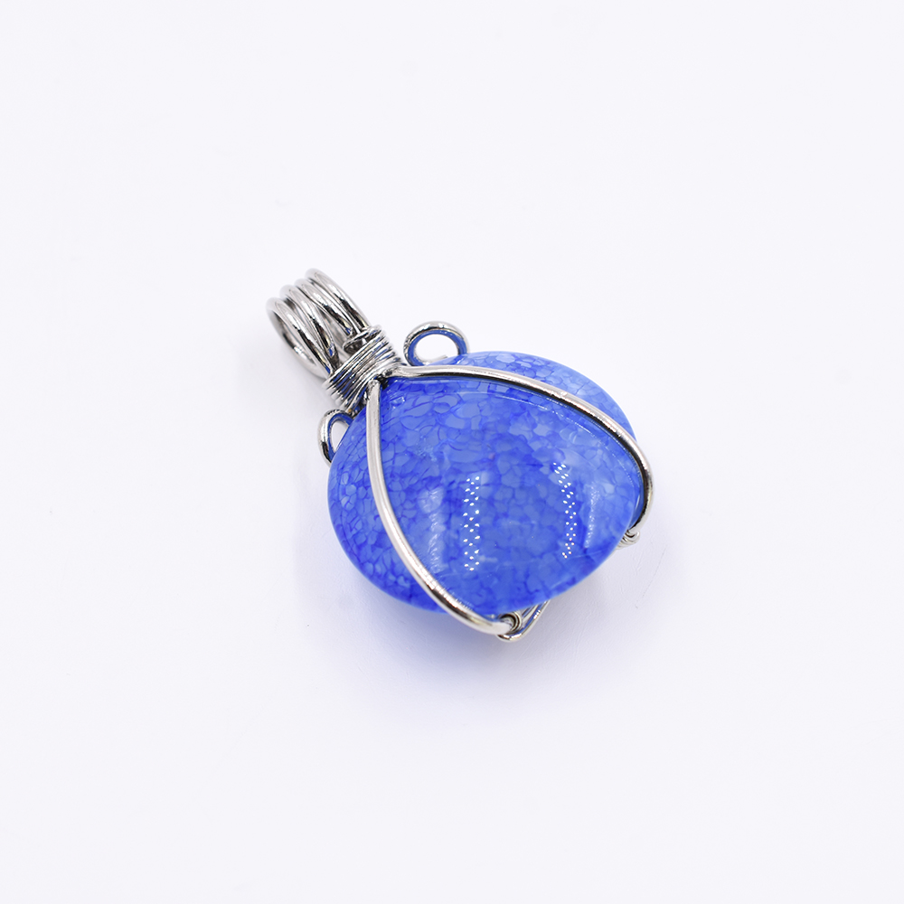 天然石チャーム ラウンド 1カン ブルーアゲート 33x22mm ロジウム (1ヶ)