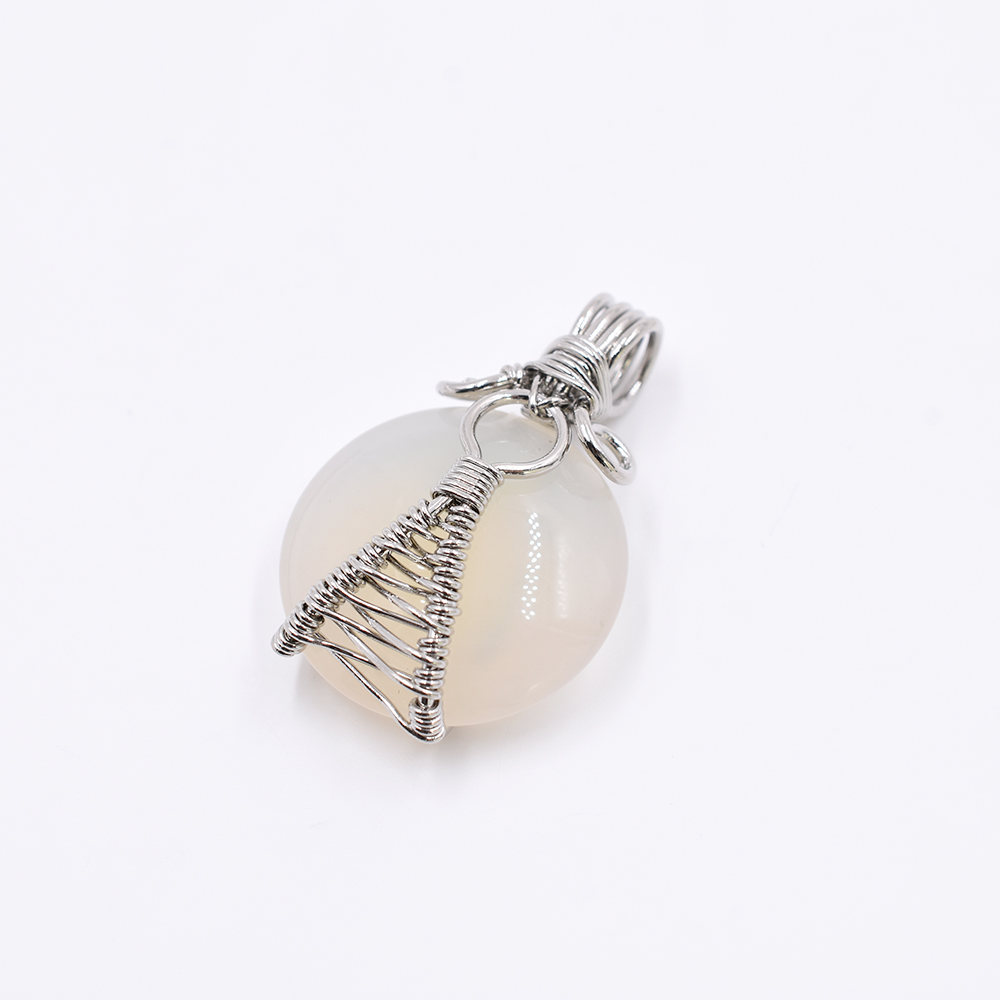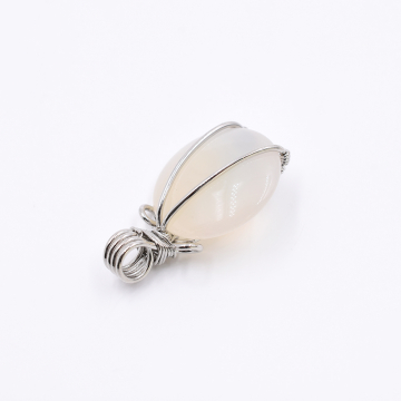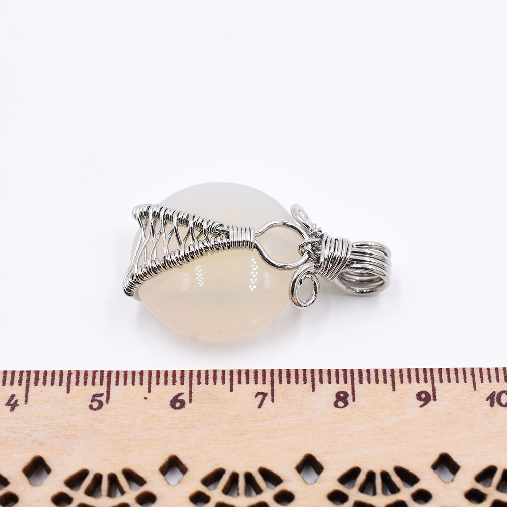 天然石チャーム ラウンド 1カン アイボリーアゲート 34x22mm ロジウム (1ヶ)