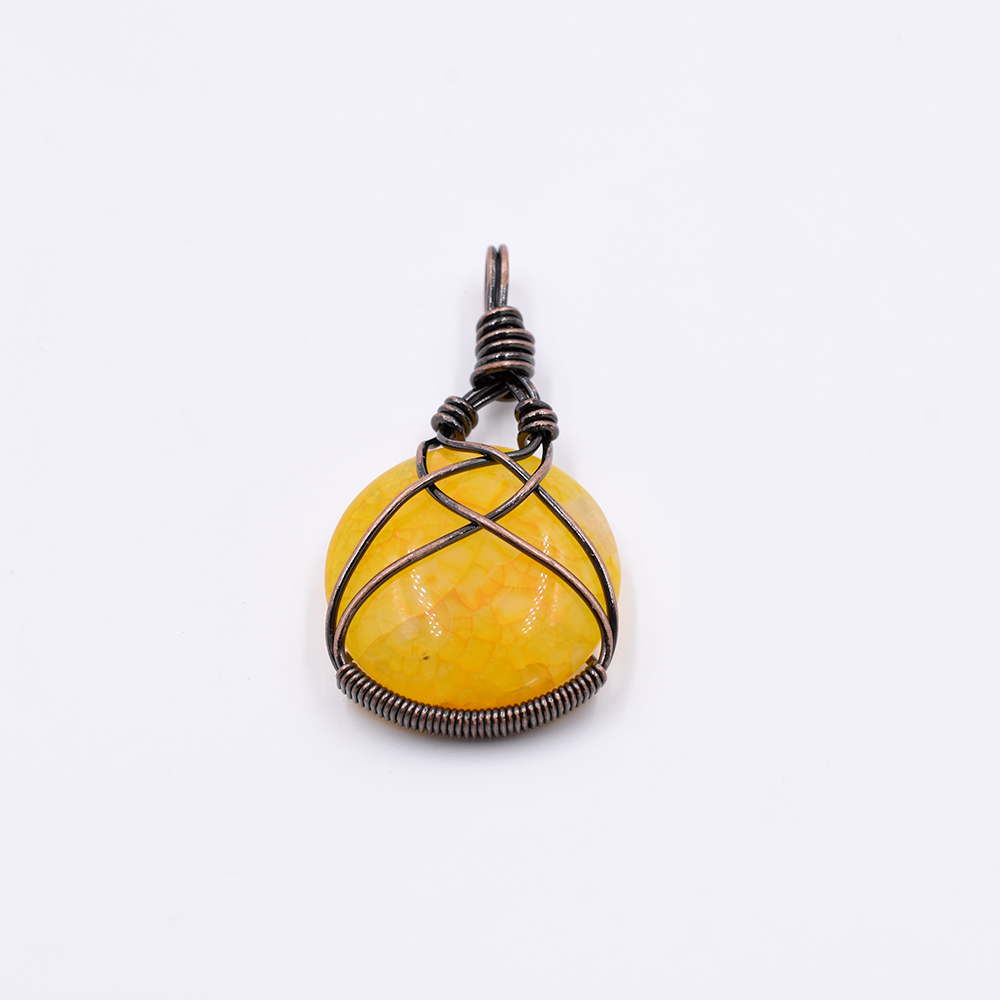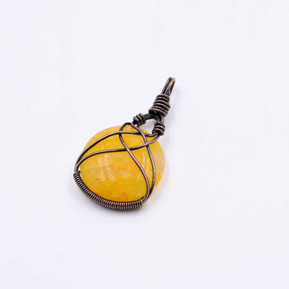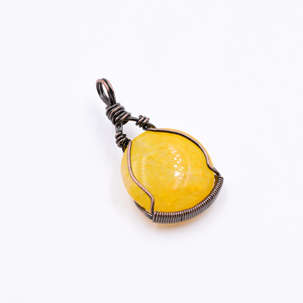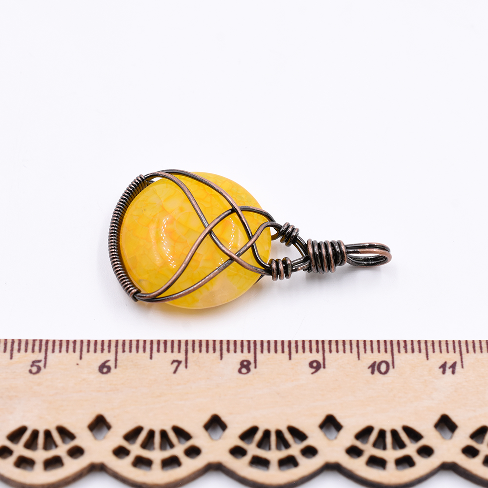 天然石チャーム ラウンド 1カン イエローアゲート 42x23mm 銅古美(1ヶ)
