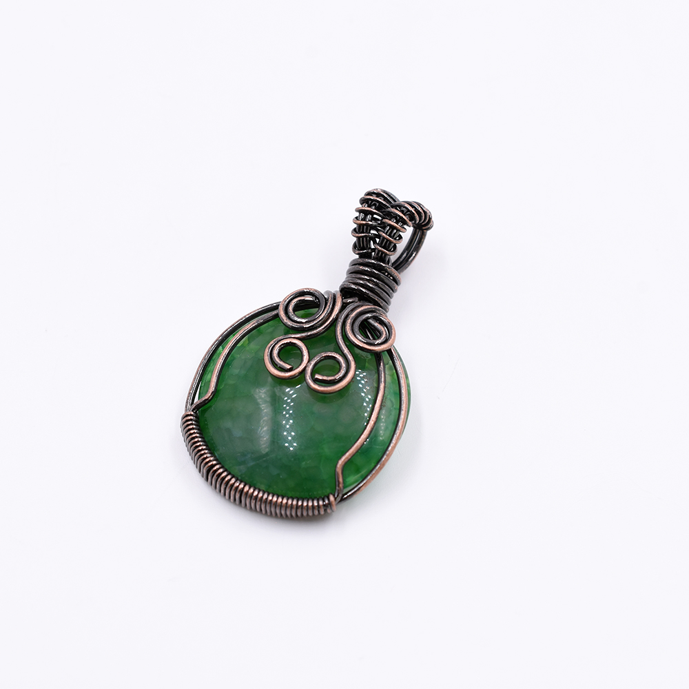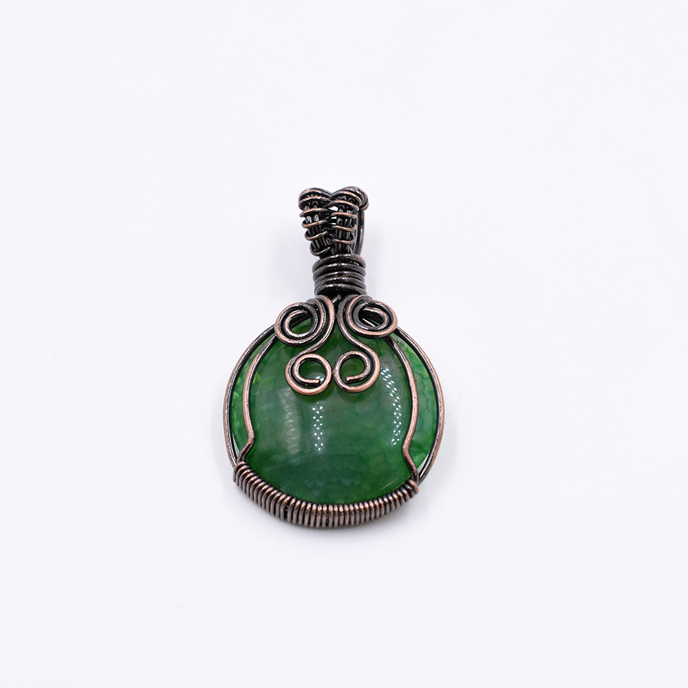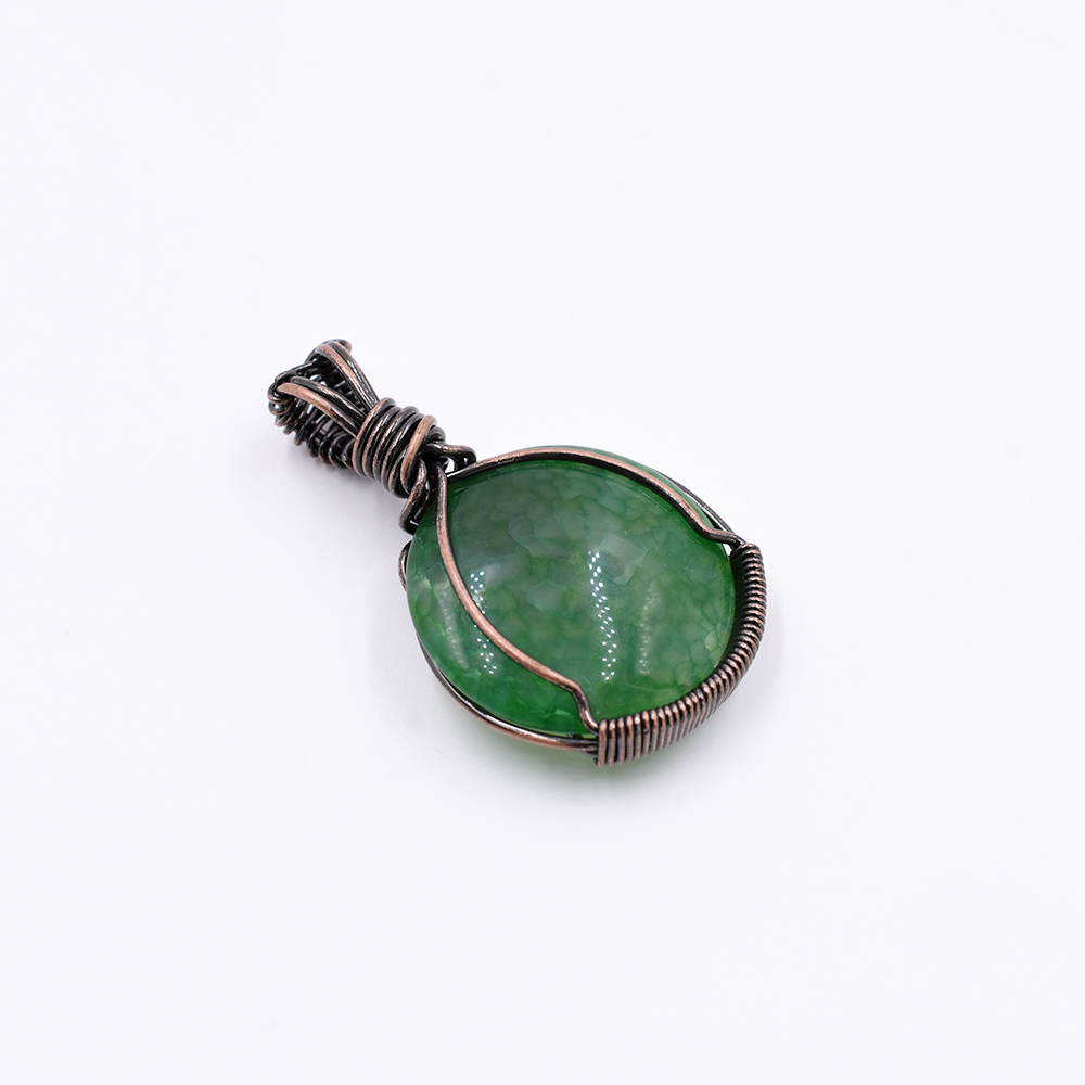 天然石チャーム ラウンド 1カン グリーンアゲート 39x24mm 銅古美(1ヶ)